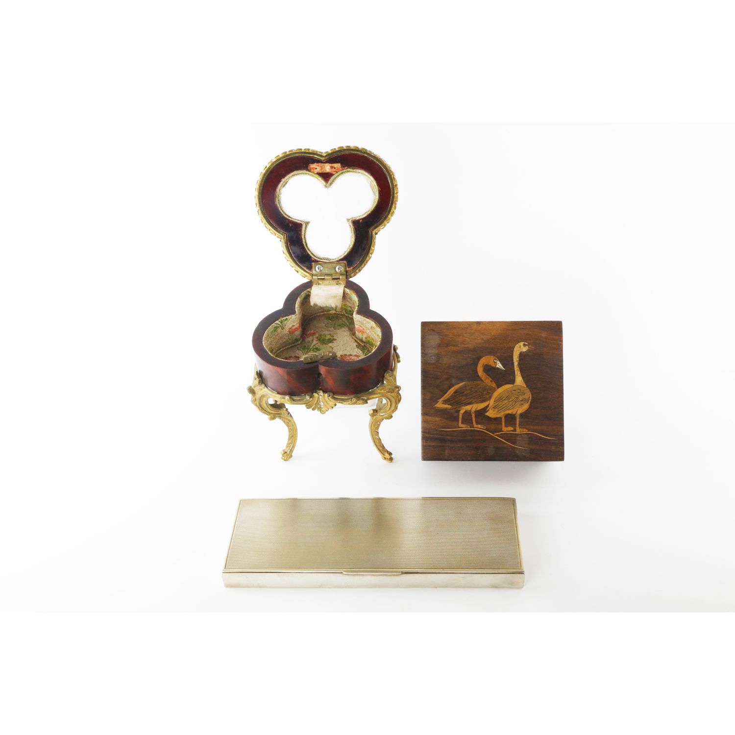 parte in legno, parte in metallo e parte in argento a forme e dimensioni diverse.