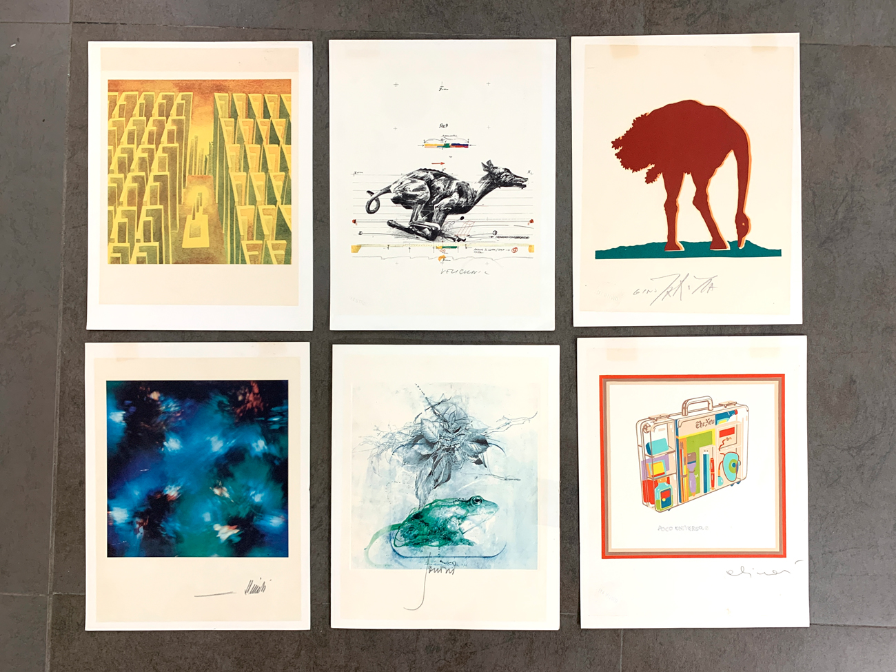Lotto unico di 6 fotolitografie BolaffiArte dei seguenti artisti: Gino Marotta, Vladimir Velickovic, Jean Michel Folon, Luca Alinari, Giorgio Giusti e Sergio Saroni