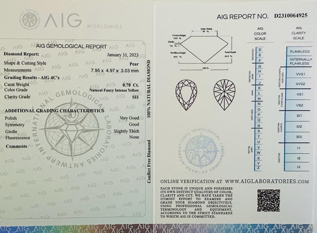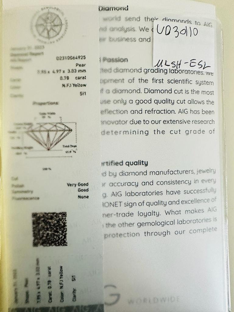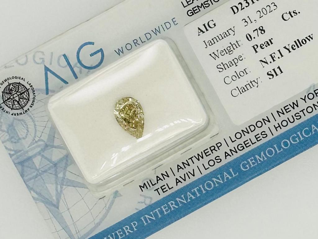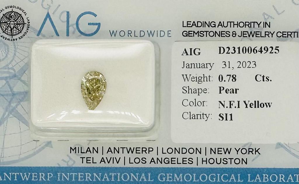 DIAMANTE 0,78 CT COLORE FANCY GIALLO INTENSO - PUREZZA SI1 - TAGLIO PERA- CERTIFICATO AIG - UD30110