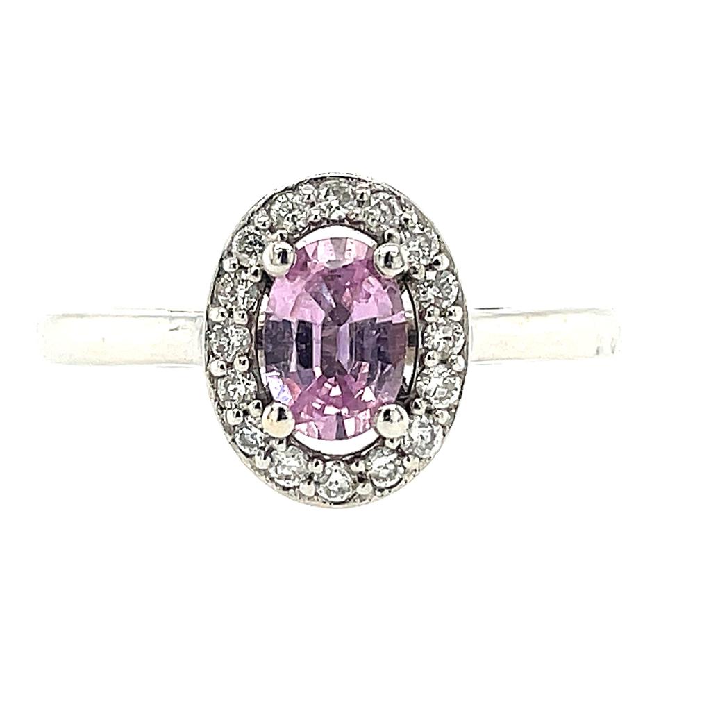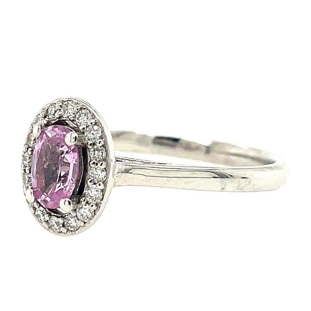 ANELLO IN ORO BIANCO 14K 2.94 GR CON ZAFFIRO ROSA 0,62 CT E DIAMANTI PER 0.14 CT TOTALI COLORE F PUREZZA VS MISURA 7 CERTIFICATO ID - A509R