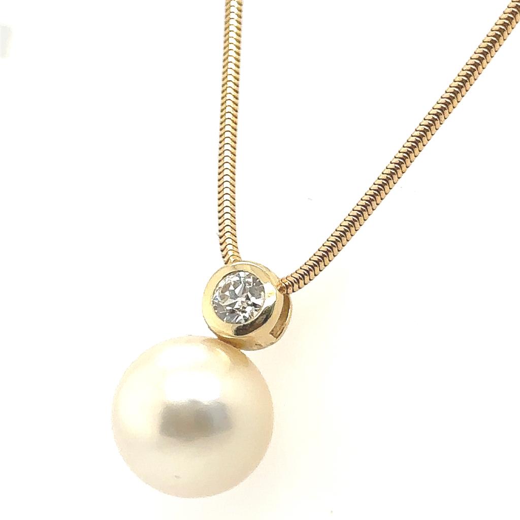 Lot 84 | GIROCOLLO IN ORO GIALLO 14K 12.57 GR PERLE E DIAMANTI PER 0.55 CT TAGLIA 44CM CERTIFICATO AIG - AI30502