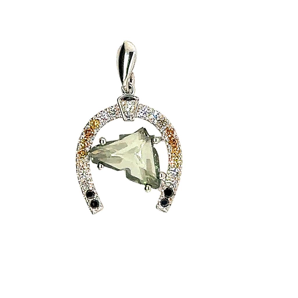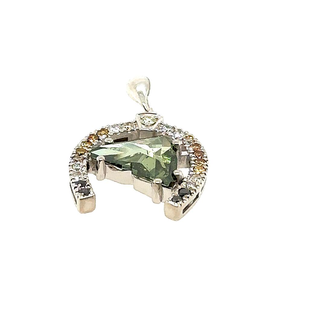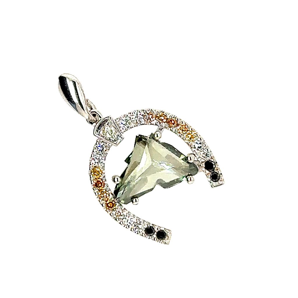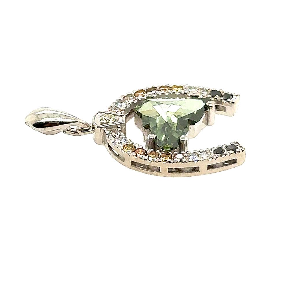 CIONDOLO FERRO DI CAVALLO IN ORO BIANCO 14K 2.73 GR DIAMANTI PER 1.01 CT FANCY VERDE (COLORE ESALTATO) VS + DIAMANTI PER 0.27 CT MIX FANCY COLOR VS - CERTIFICATO ID - DH30515