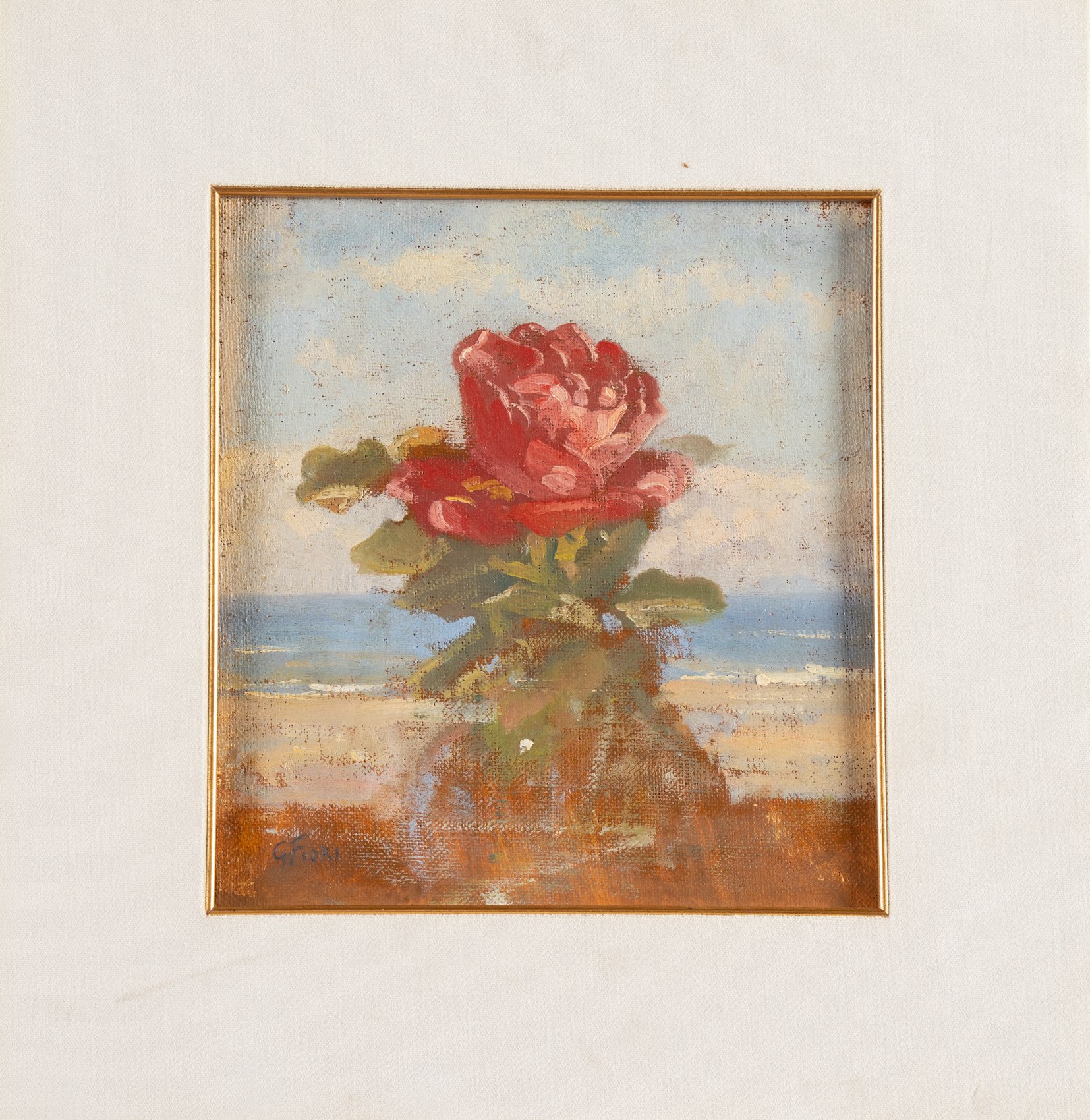 Giulio Fiori (Bologna 1909 - 1991), “Marina con rosa”, 1971. Olio su cartone, firmato e datato in basso a sinistra, H cm 28x25