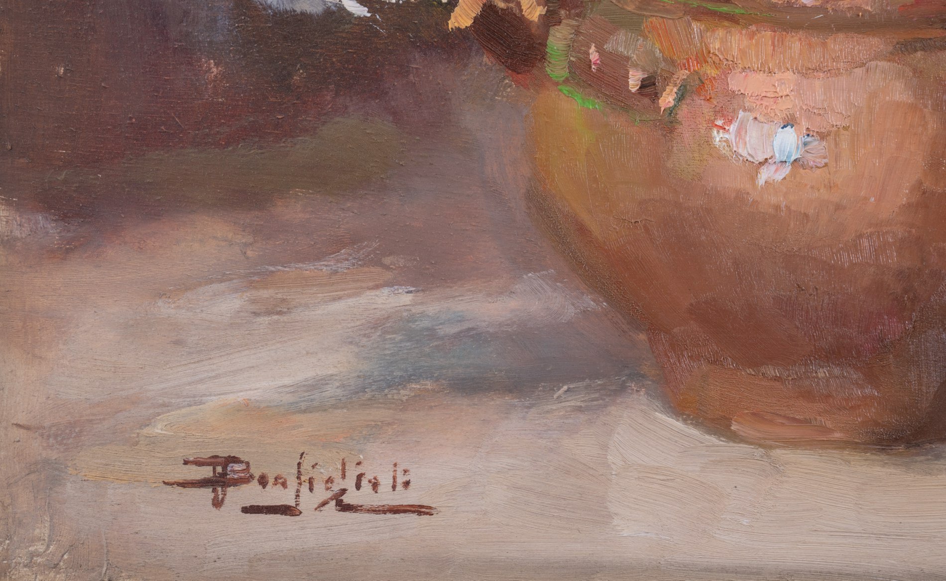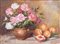 Umberto Bonfiglioli (Bologna 1892 - 1974), “Natura morta con fiori e frutta”. Olio su tavola,