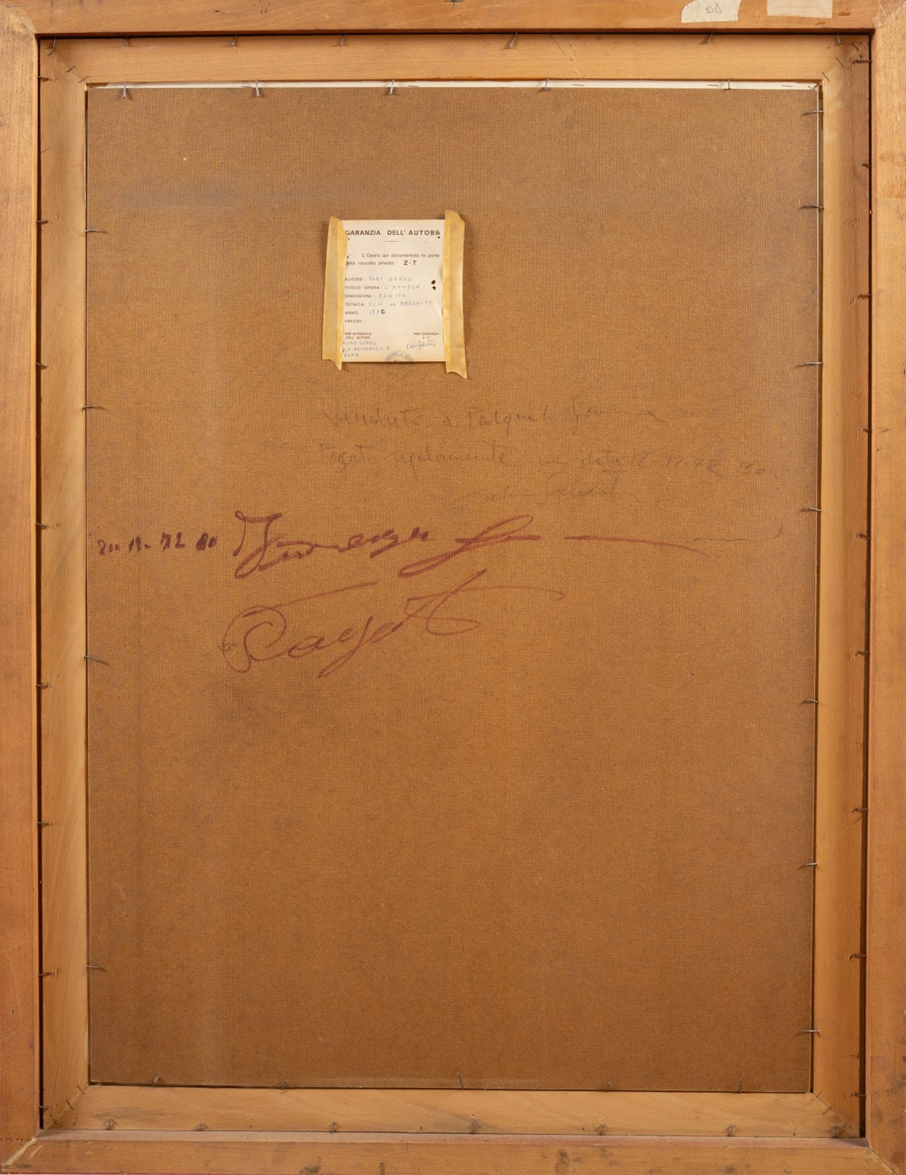 Rudi Gorog (XX secolo), “L’attesa”, 1970. Olio su masonite, firmato e datato in basso a destra, reca al retro garanzia dell’autore con firma e dedica, H cm 70x100