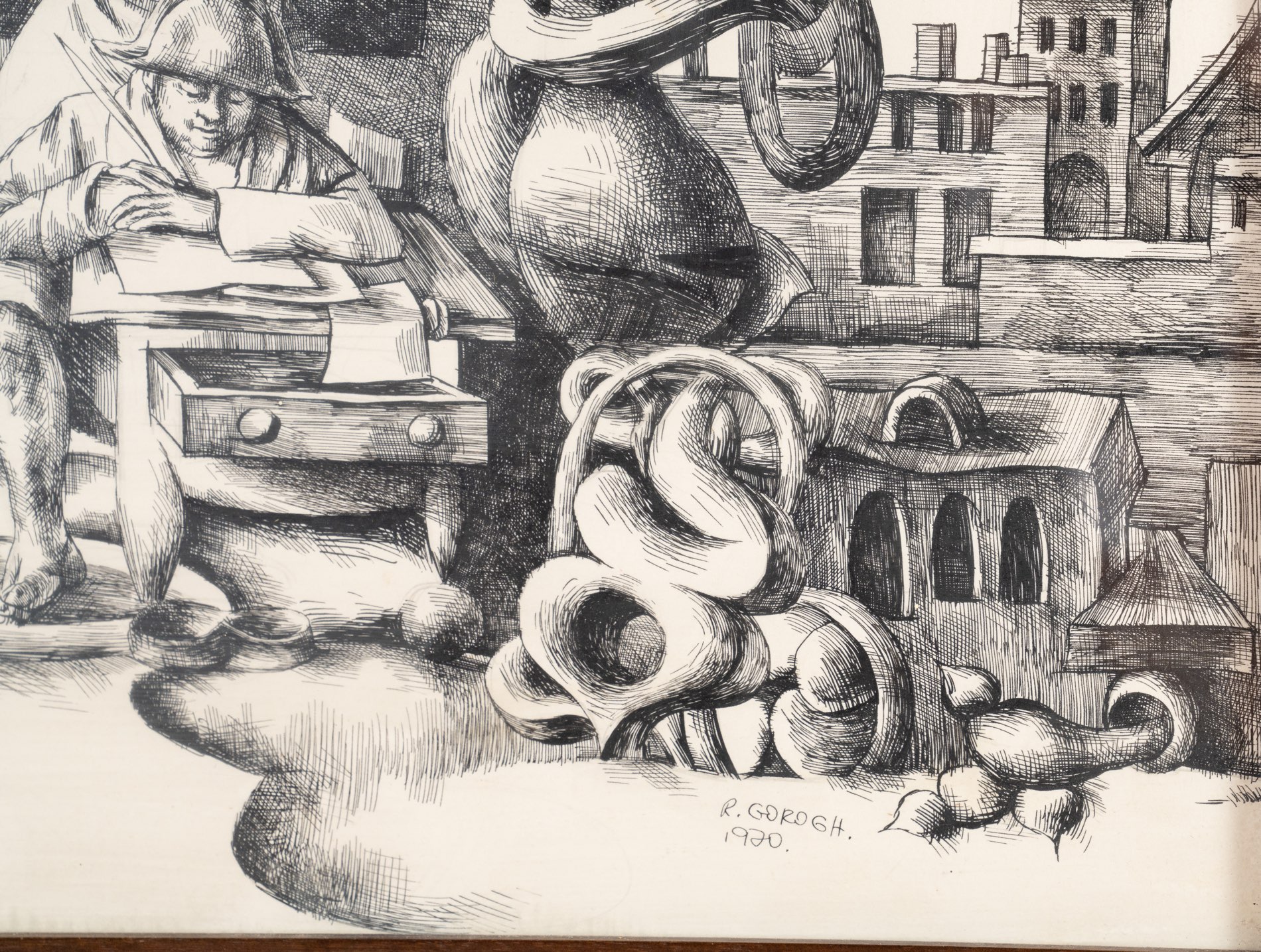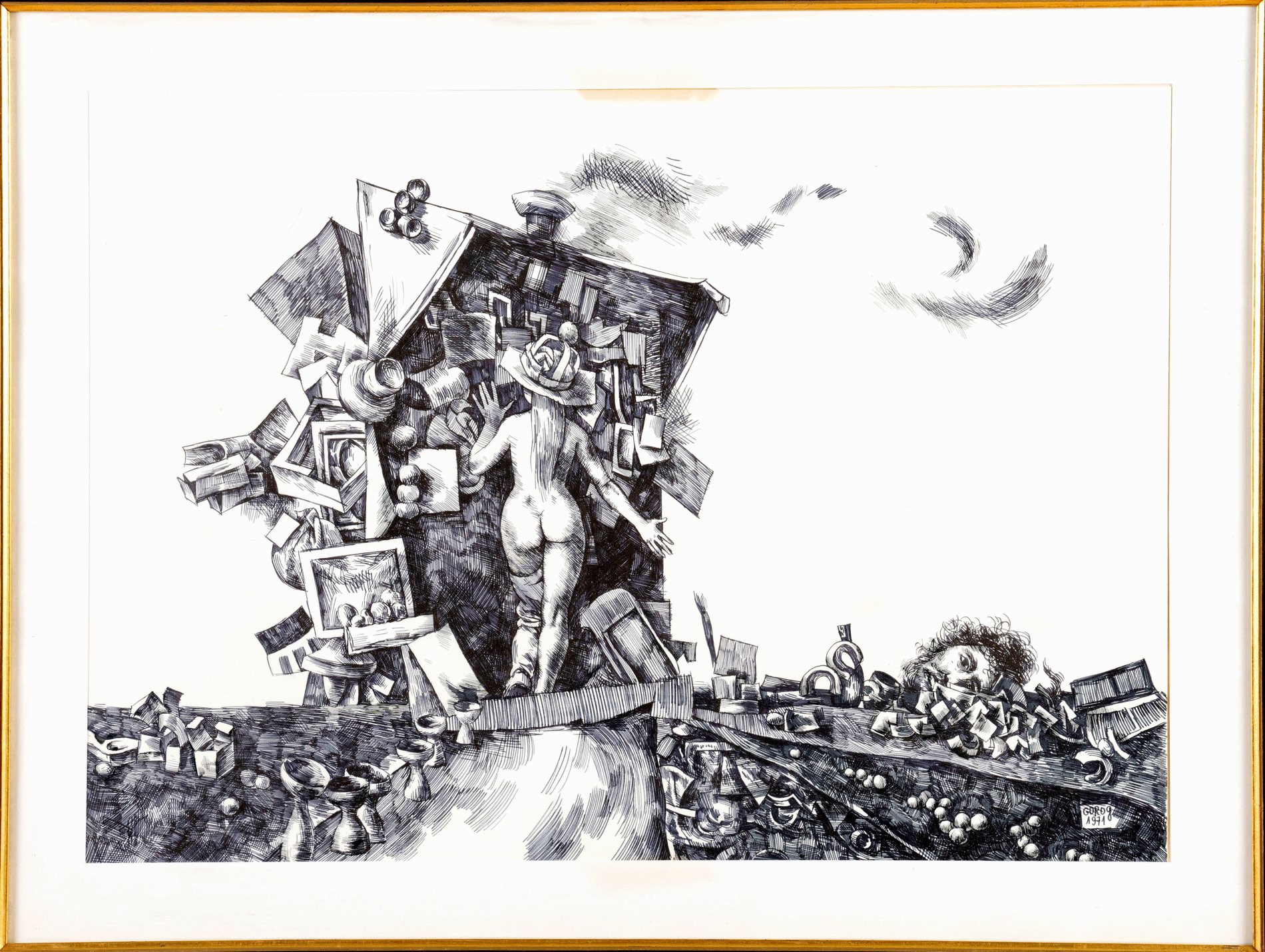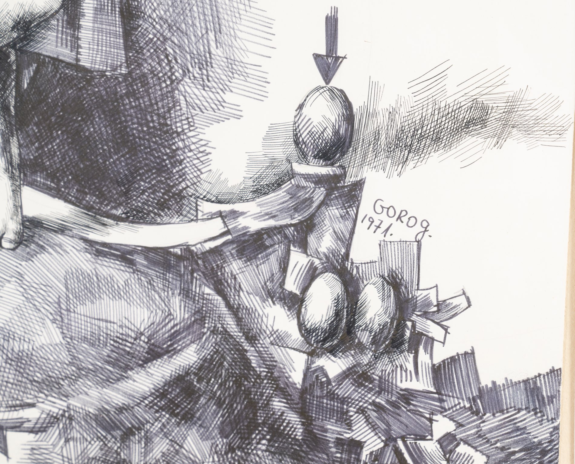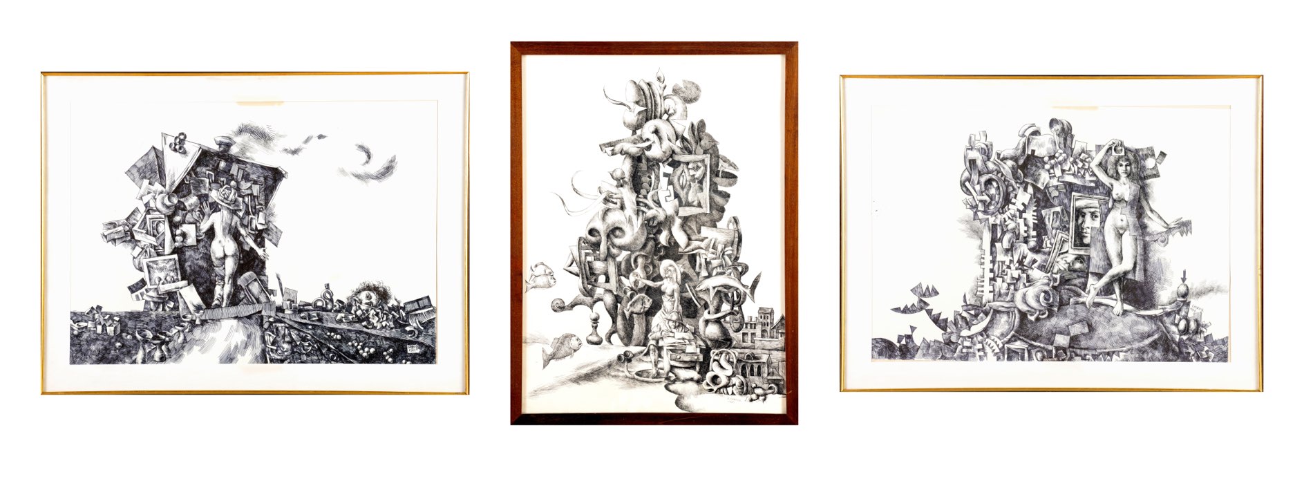 Rudi Gorog (XX secolo), “Senza titolo”. Lotto di tre chine su carta firmate e datate in basso a destra, H cm 50x70