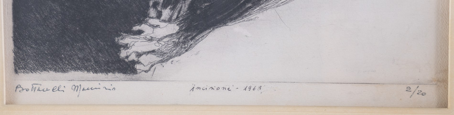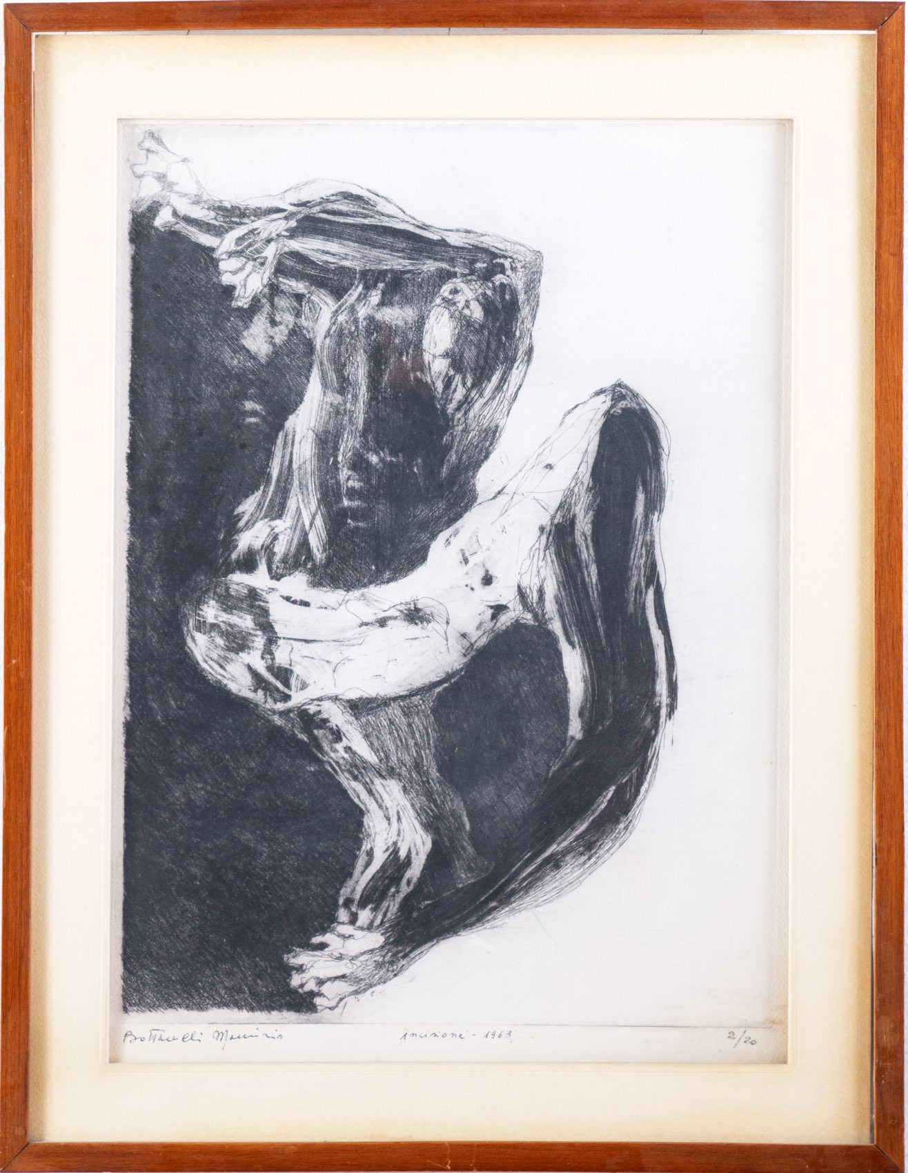 Maurizio Bottarelli (Fidenza 1943), “Senza titolo”, 1963. Incisione su carta, firmata in basso a sinistra, presenta in basso al centro iscrizione “incisione - 1963” e numero di tiratura in basso a destra 2/20, Lastra H cm 44x32.5