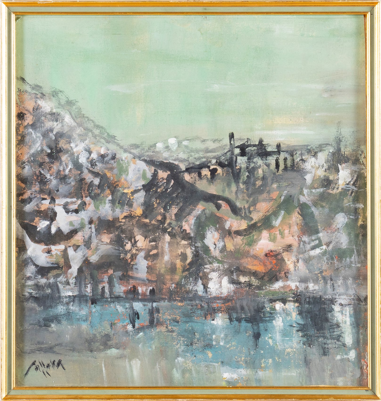Lot 95 | Artista del XX secolo, “Riva del lago”. Tempera su tela, firmato in basso a sinistra