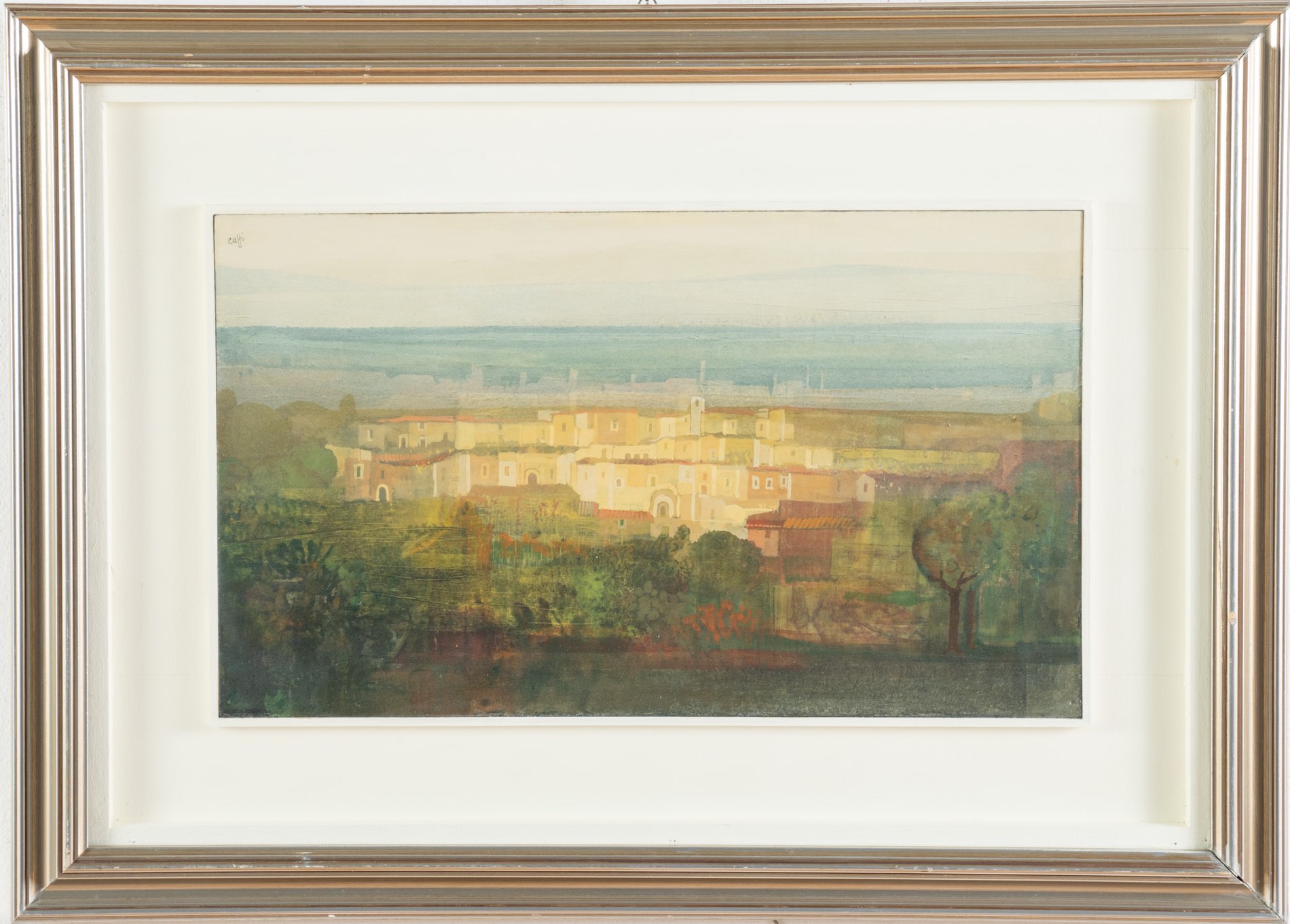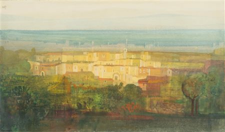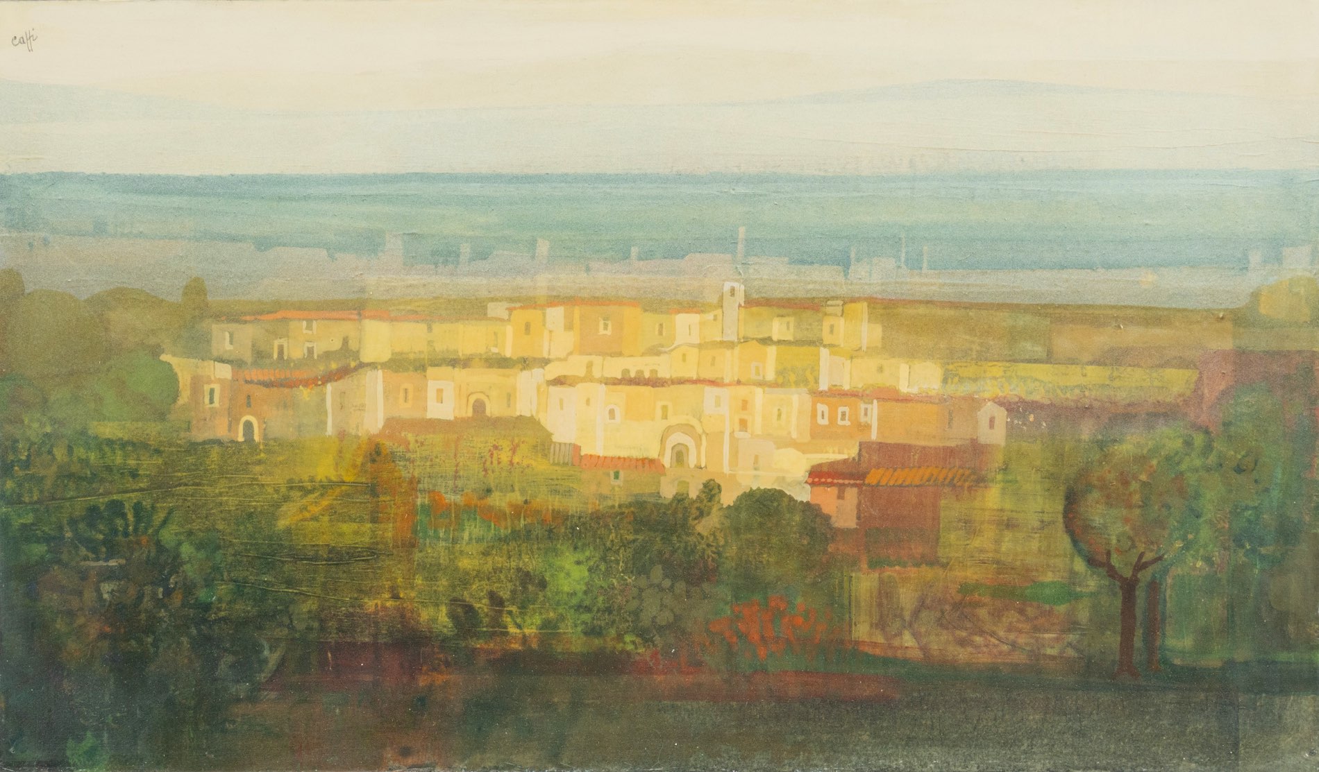 Gianfranco Caffi (Cazzago San Martino 1937), “Franciacorta, Paesaggio”, 1987. Tecnica mista su