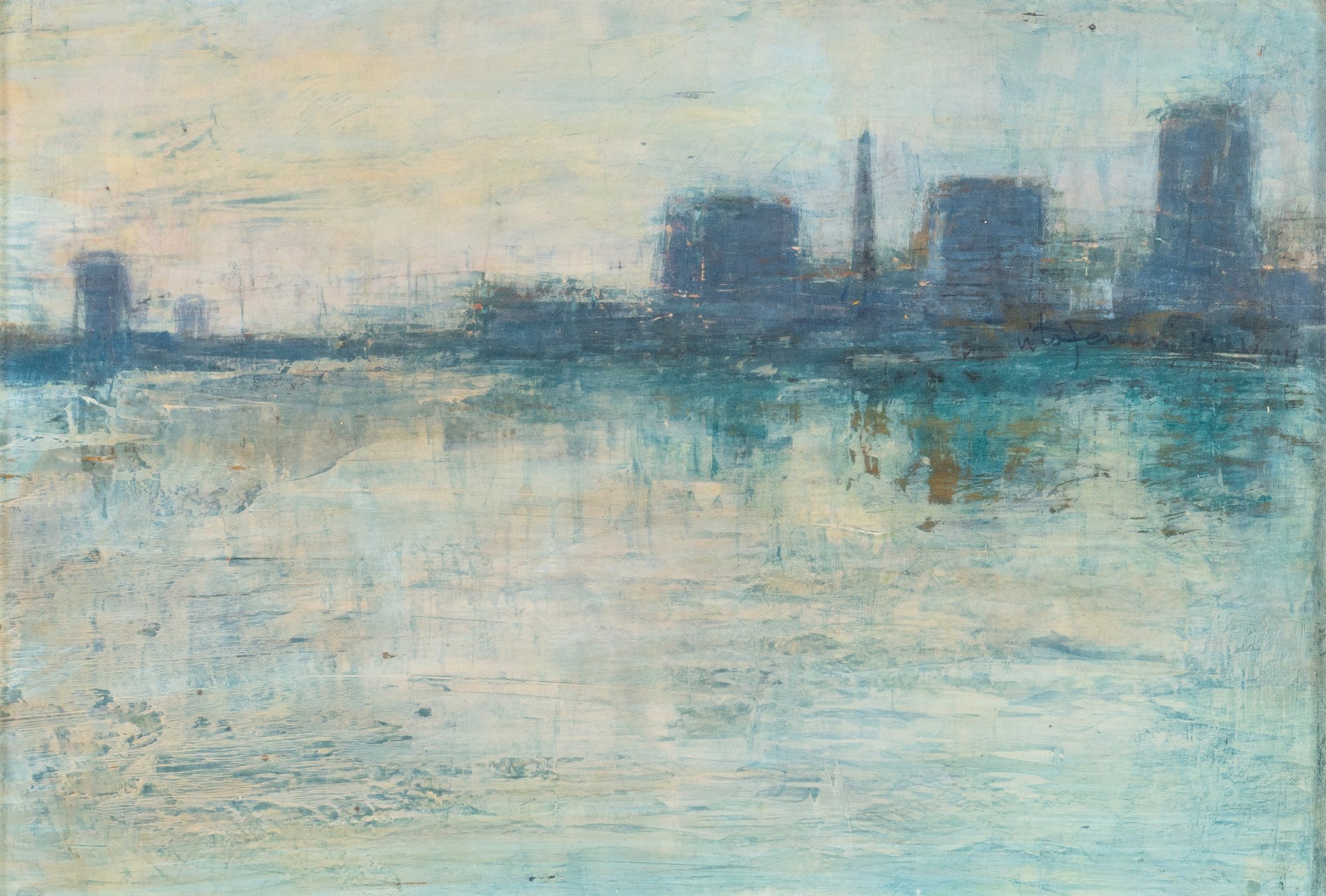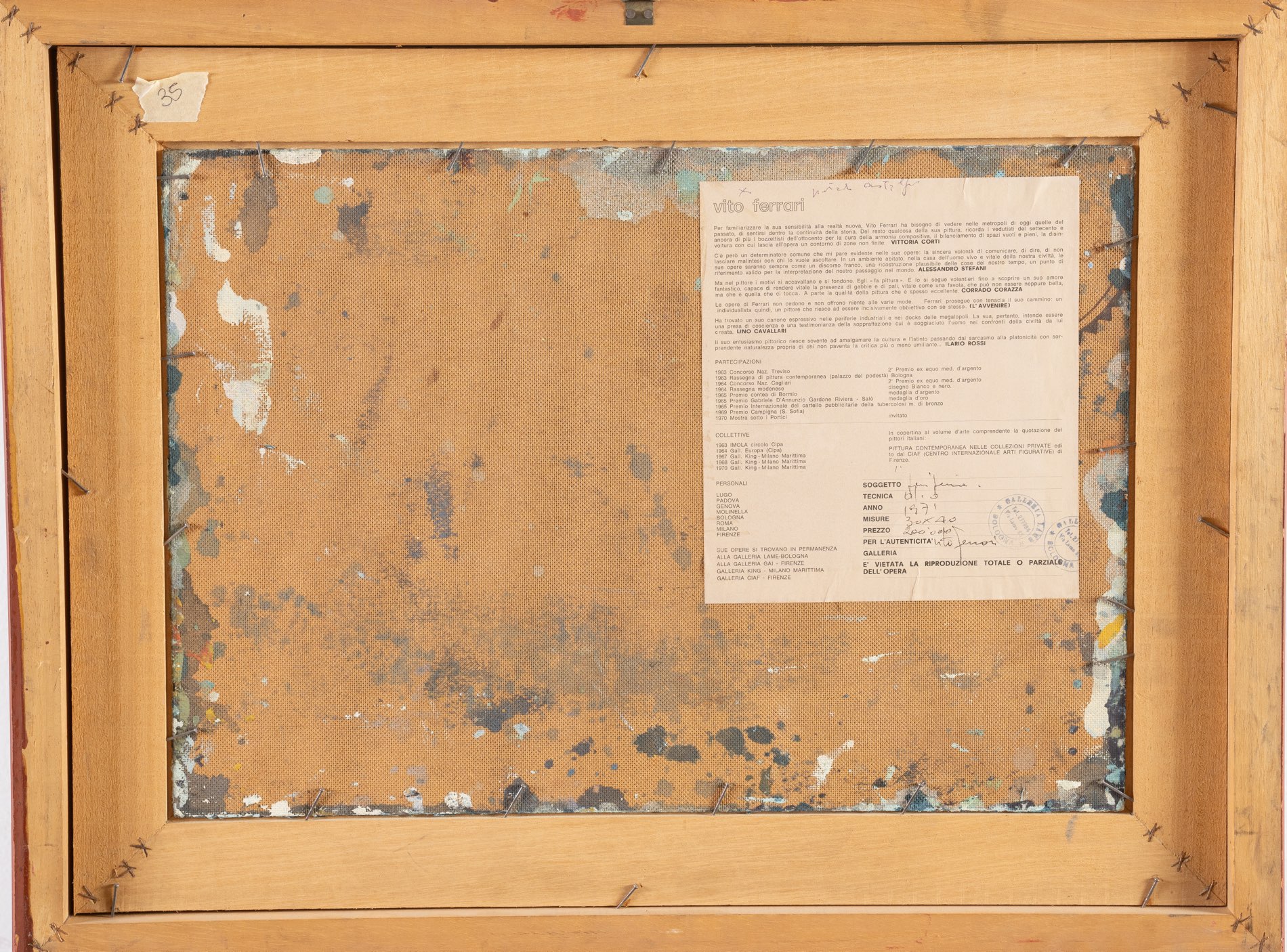 Vito Ferrari (Rovigo 1928), “Periferia”, 1971. Olio su masonite, reca al retro etichetta della