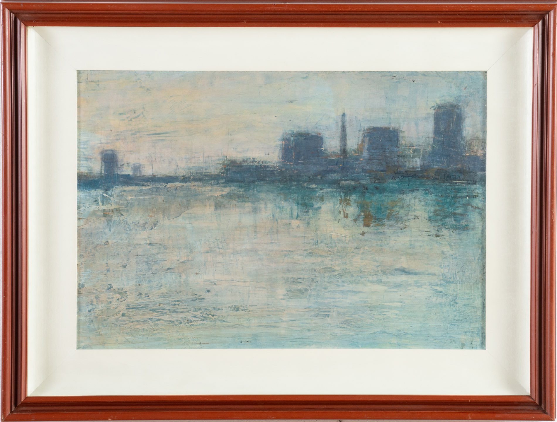 Vito Ferrari (Rovigo 1928), “Periferia”, 1971. Olio su masonite, reca al retro etichetta della Galleria Lame - Bologna con titolo, tecnica, data e firma, H cm 30x40