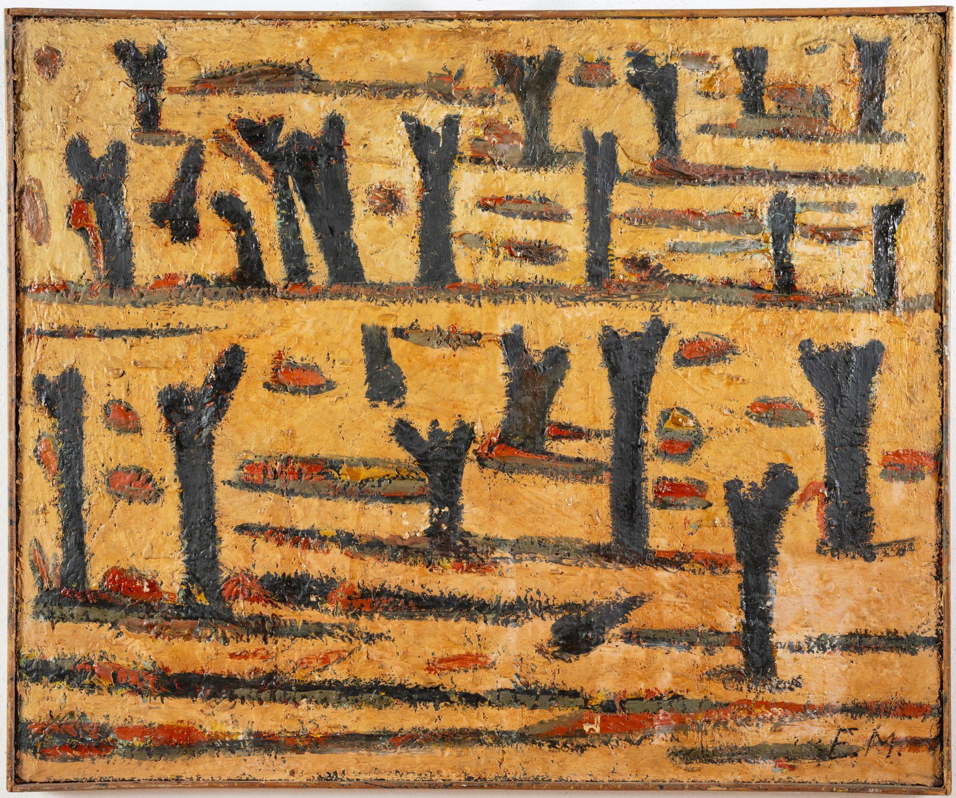 Artista del XX secolo, “Inverno”, 1952. Olio su tela, siglato in basso a destra “E. M.”,