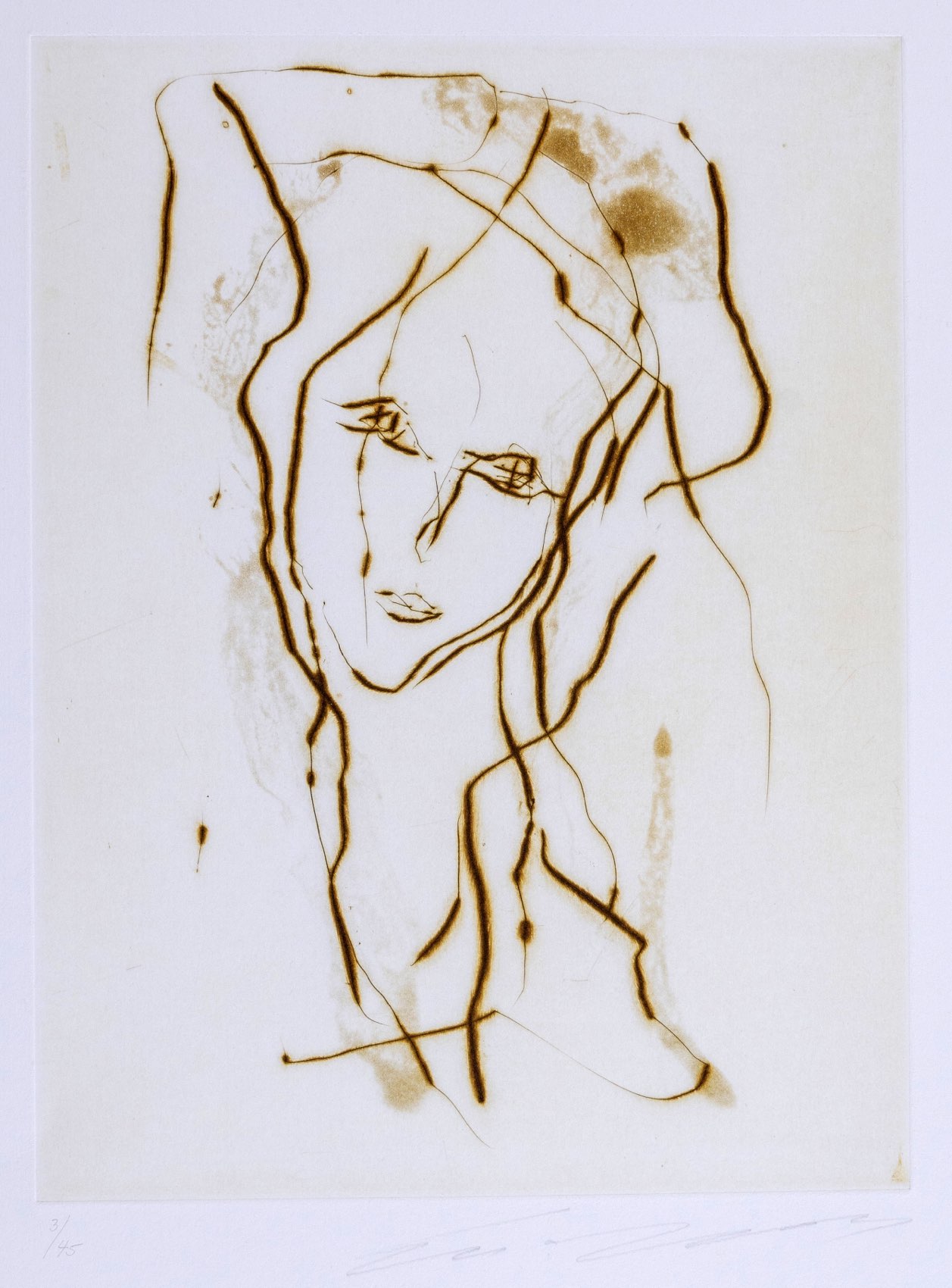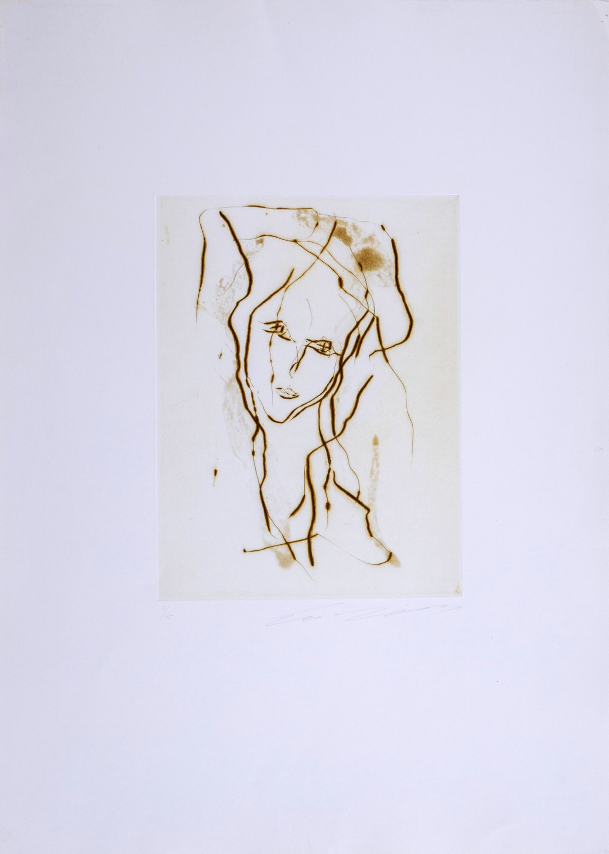 Ernesto Treccani (Milano 1920 - 2009), “Volto femminile”. Litografia a colori su carta, firmata in basso a destra, numero di tiratura in basso a sinistra 3/45, Lastra H cm 33x24 - Foglio H cm 69.5x50