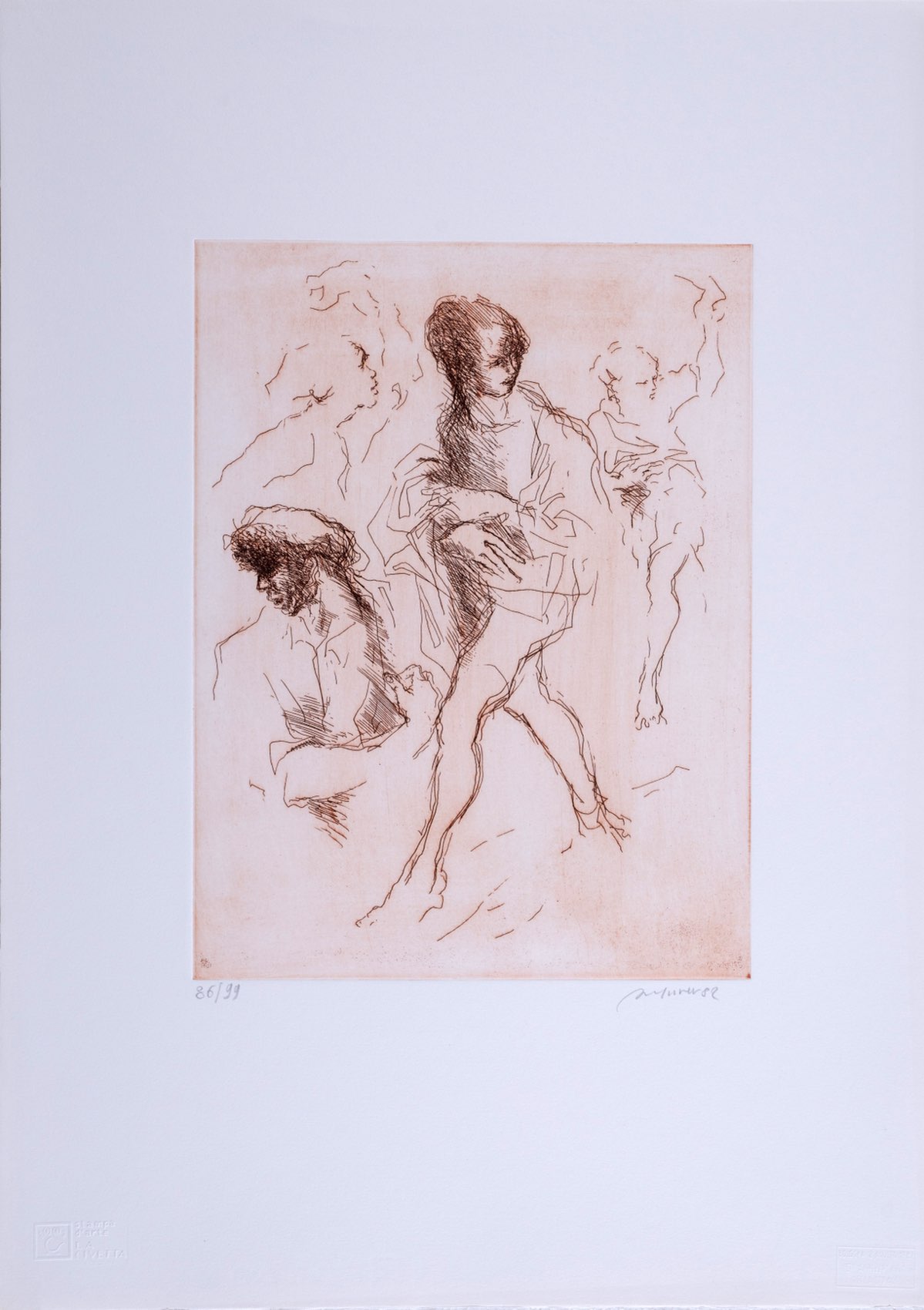 Augusto Murer (Falcade 1922 - Padova 1985), “Figure”, 1982. Litografia su carta, firmata e
