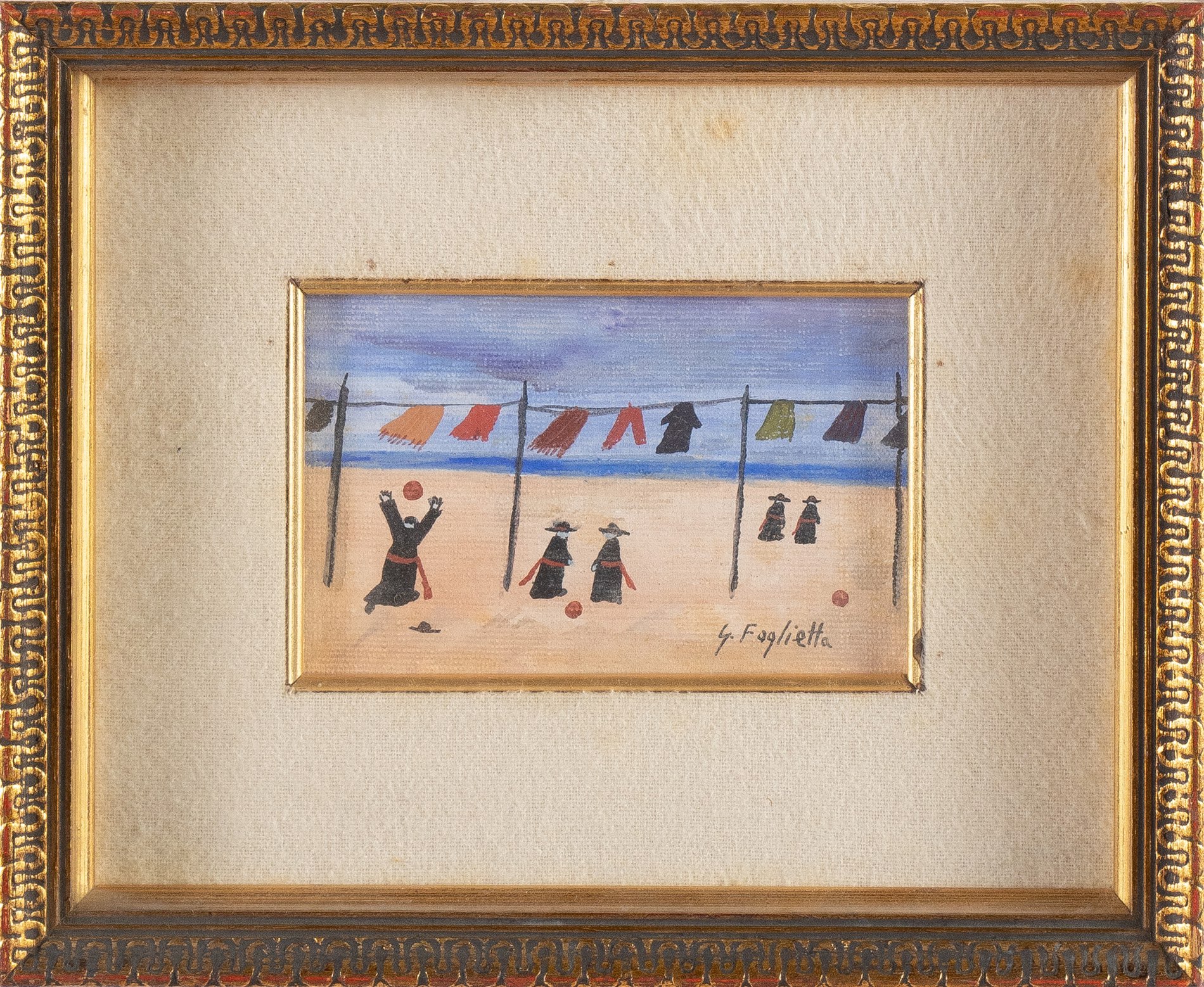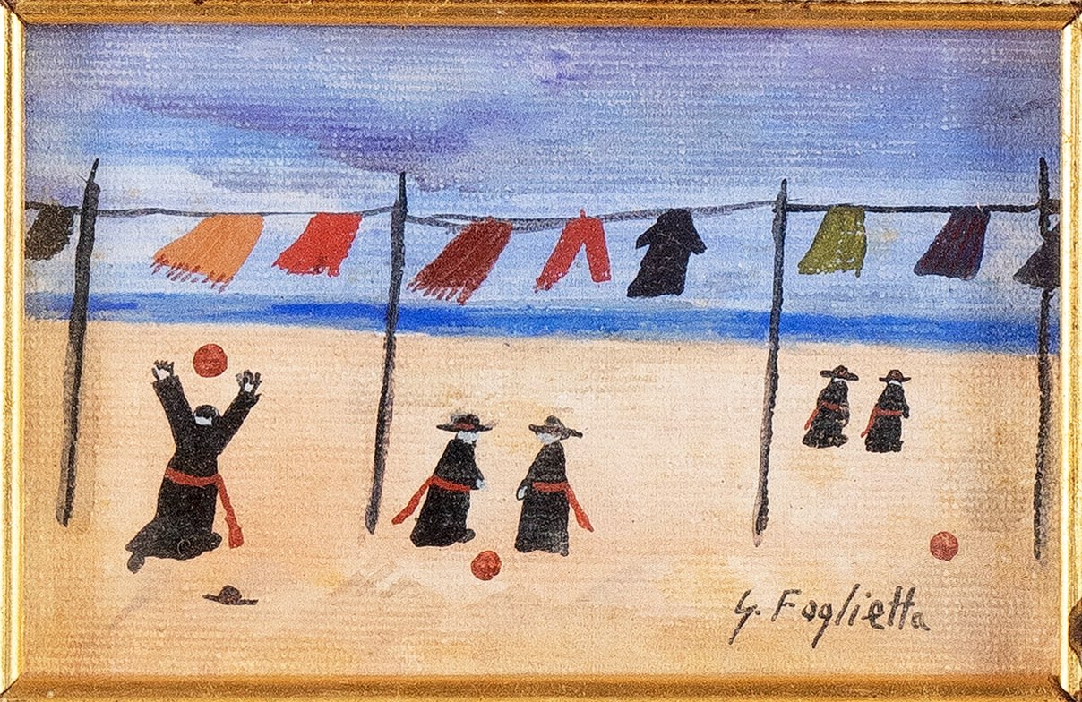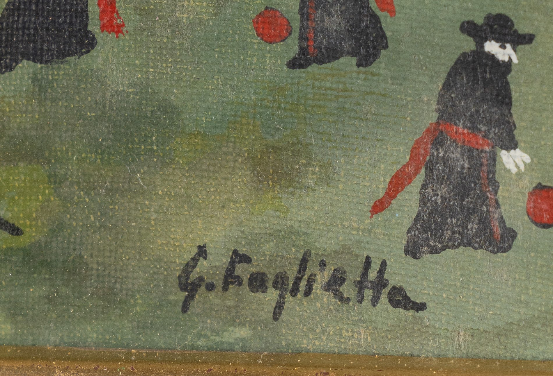Artista del XX secolo, “Preti”. Lotto composto da due dipinti a olio su cartone telato, firmati in basso “G. Foglietta”, H cm 10x15 - H cm 15x10