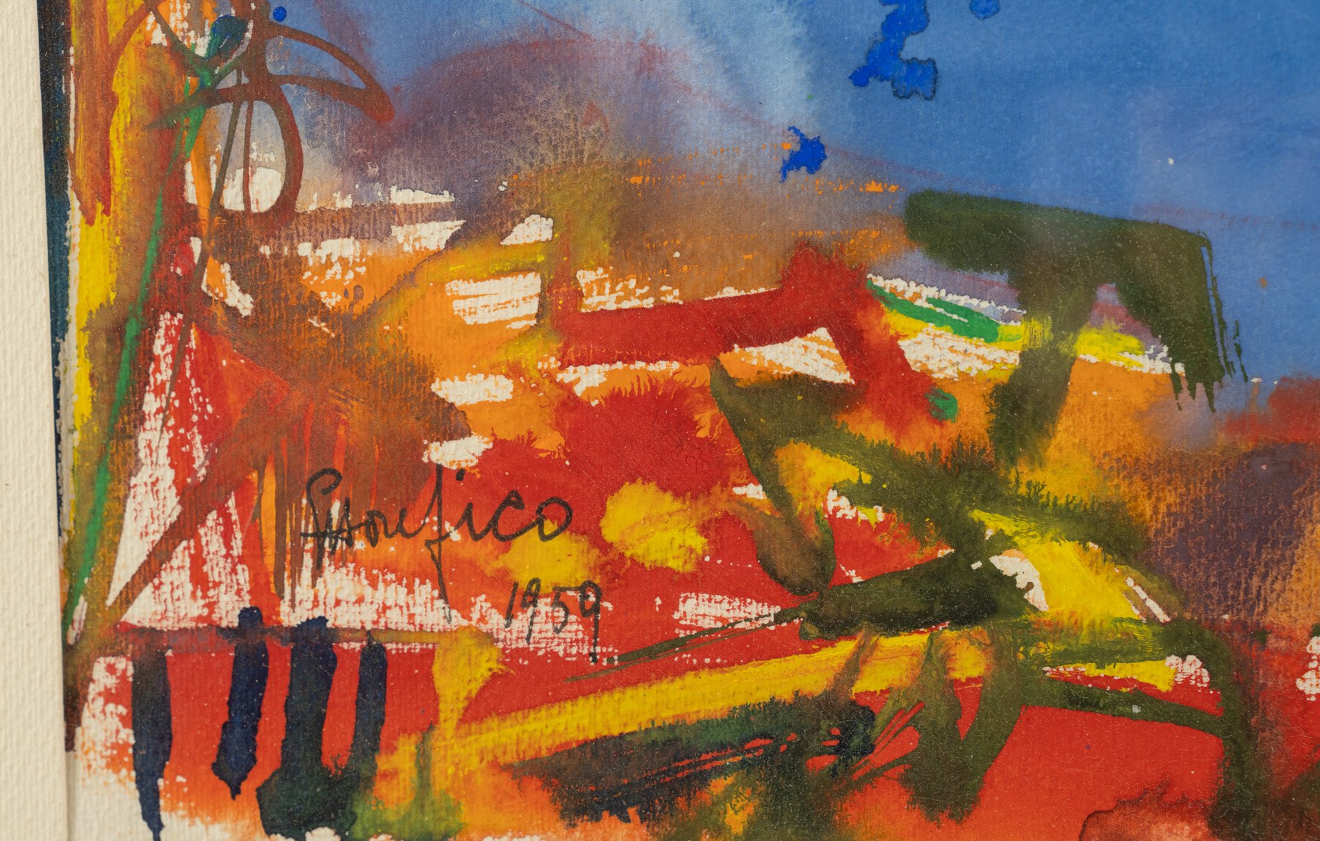 Ettore Fico (Piatto 1917 - Torino 2004), “Amalfi”, 1959. Acquerello su cartoncino, firmata e