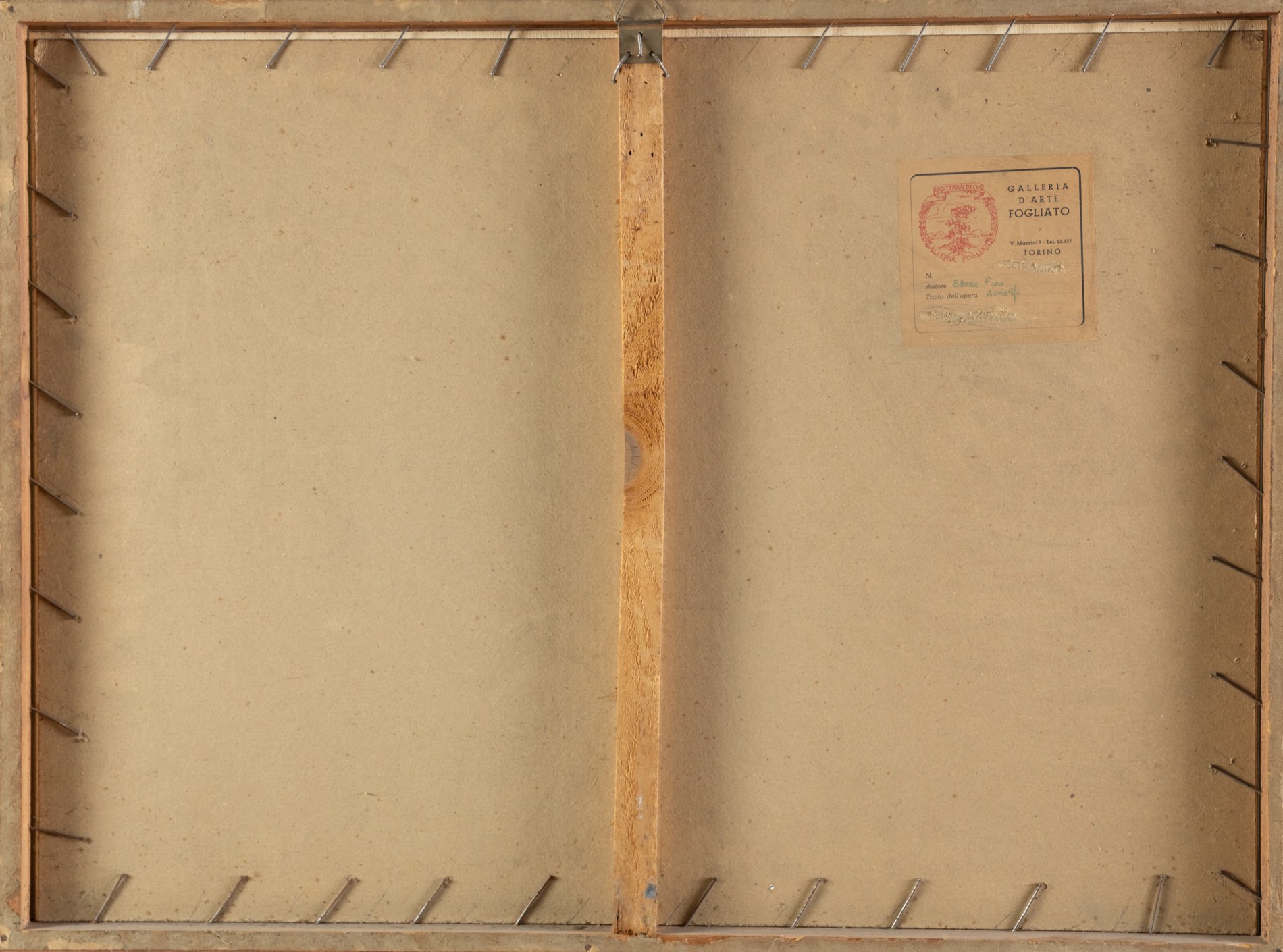 Ettore Fico (Piatto 1917 - Torino 2004), “Amalfi”, 1959. Acquerello su cartoncino, firmata e datata in basso a sinistra, reca al retro etichetta della Galleria d'Arte Fogliato - Torino con autore e titolo, H cm 37.5x56