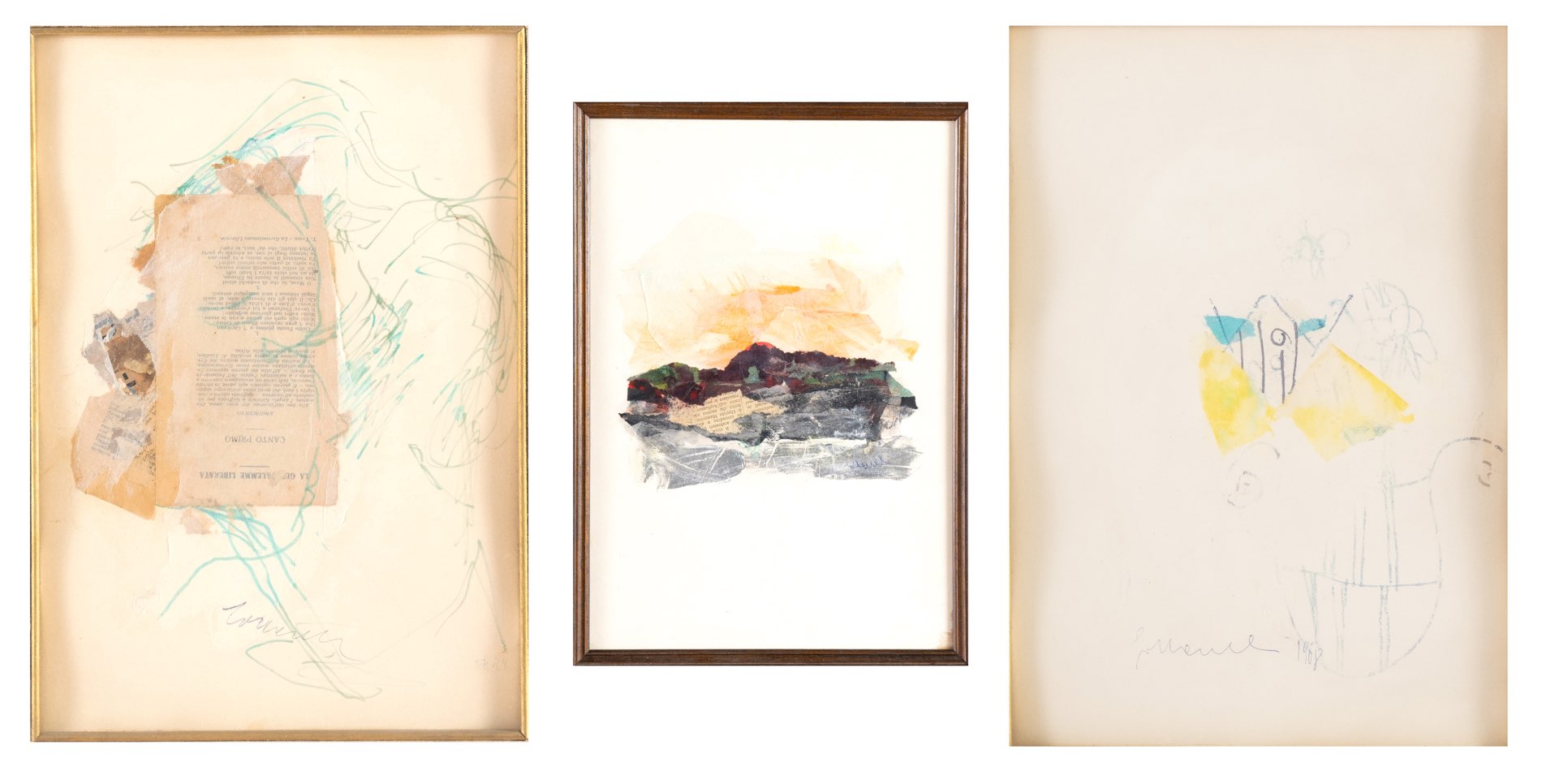 Tonino Gottarelli (Imola 1920 - 2007), “Senza titolo”. Lotto composto da tre dipinti a tecnica mista su carta, recano firme in basso, H cm 32x22 - H cm 33x23 - 32x23