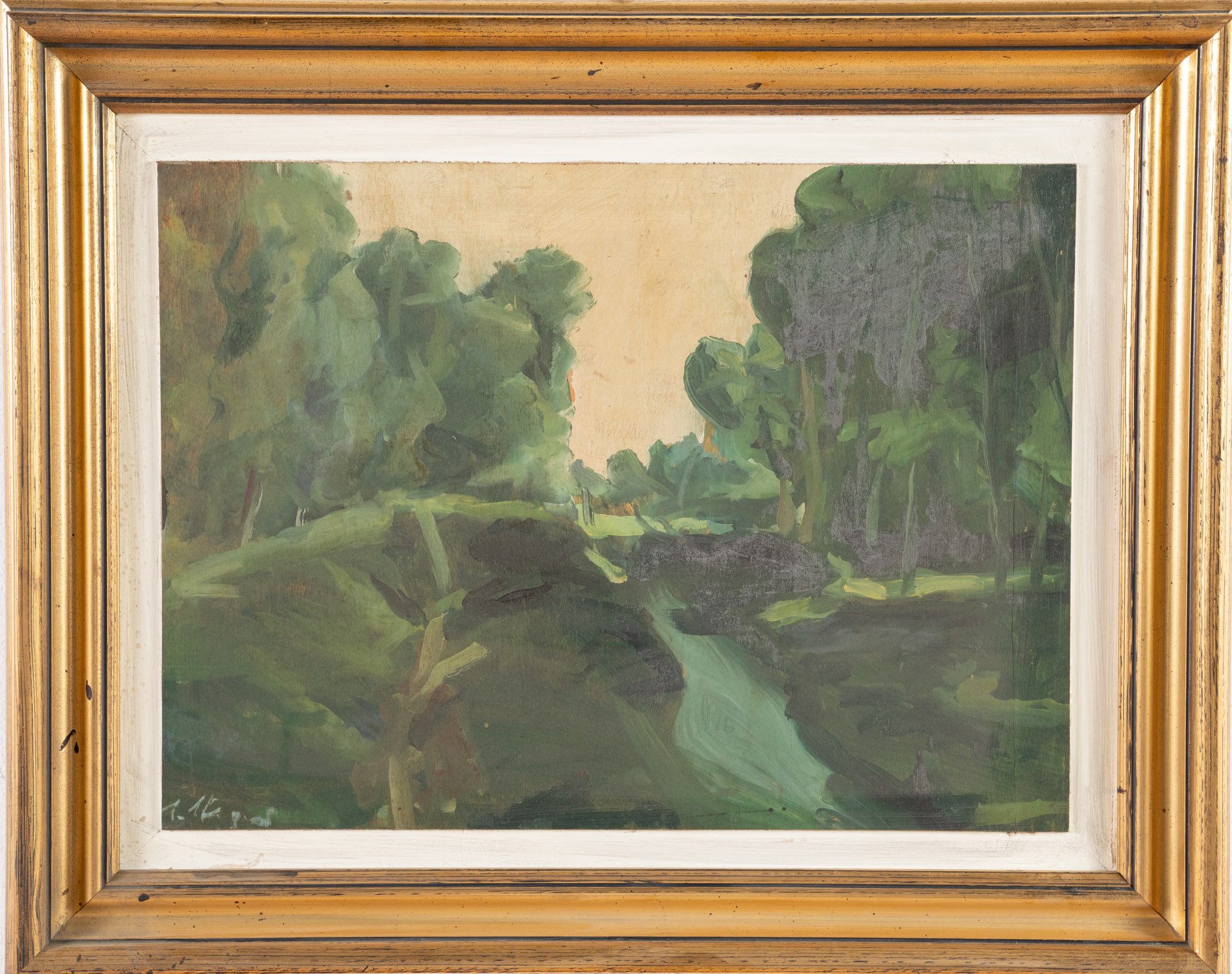 Camillo Stagni (Borgo Panigale 1888 - Bologna 1972), “Paesaggio”. Olio su compensato, firmato