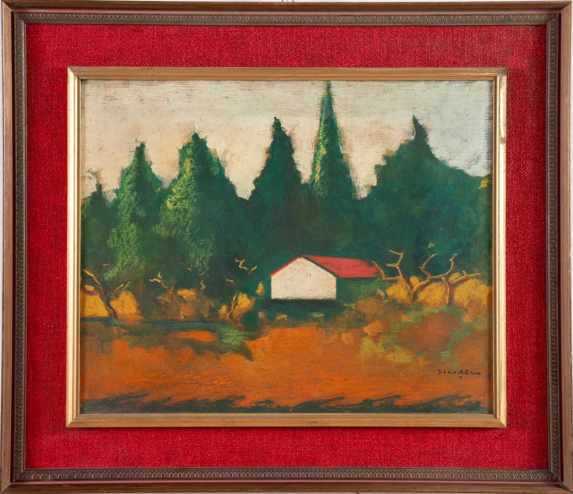 Gilberto Filibeck (Roma 1930), “Paesaggio”. Olio su tavola, firmato in basso a destra, H cm 43x52