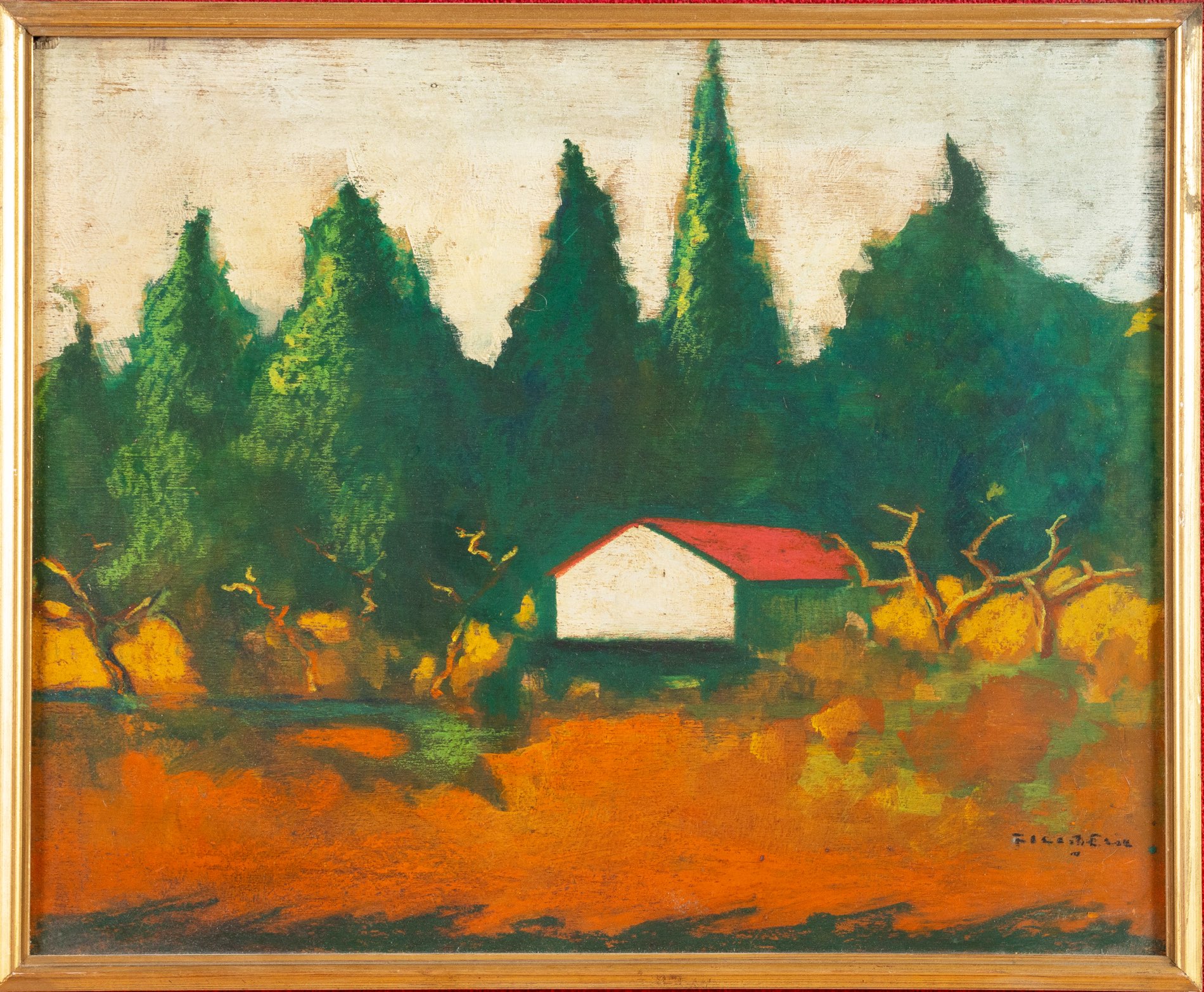 Gilberto Filibeck (Roma 1930), “Paesaggio”. Olio su tavola, firmato in basso a destra, H cm