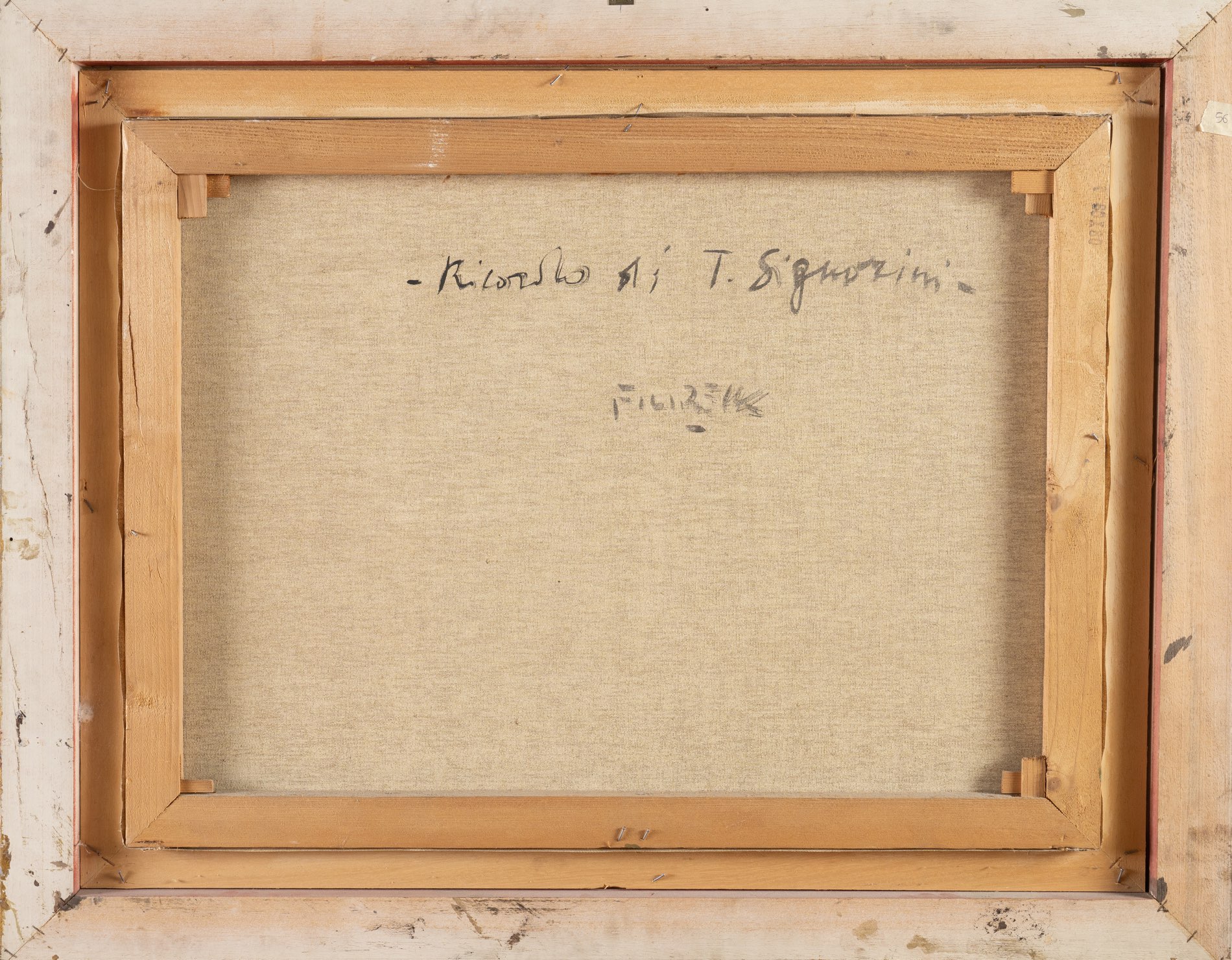 Gilberto Filibeck (Roma 1930), “Ricordo di T. Signorini”. Olio su tela, firmato in basso a destra, reca al retro titolo e firma, H cm 60x80