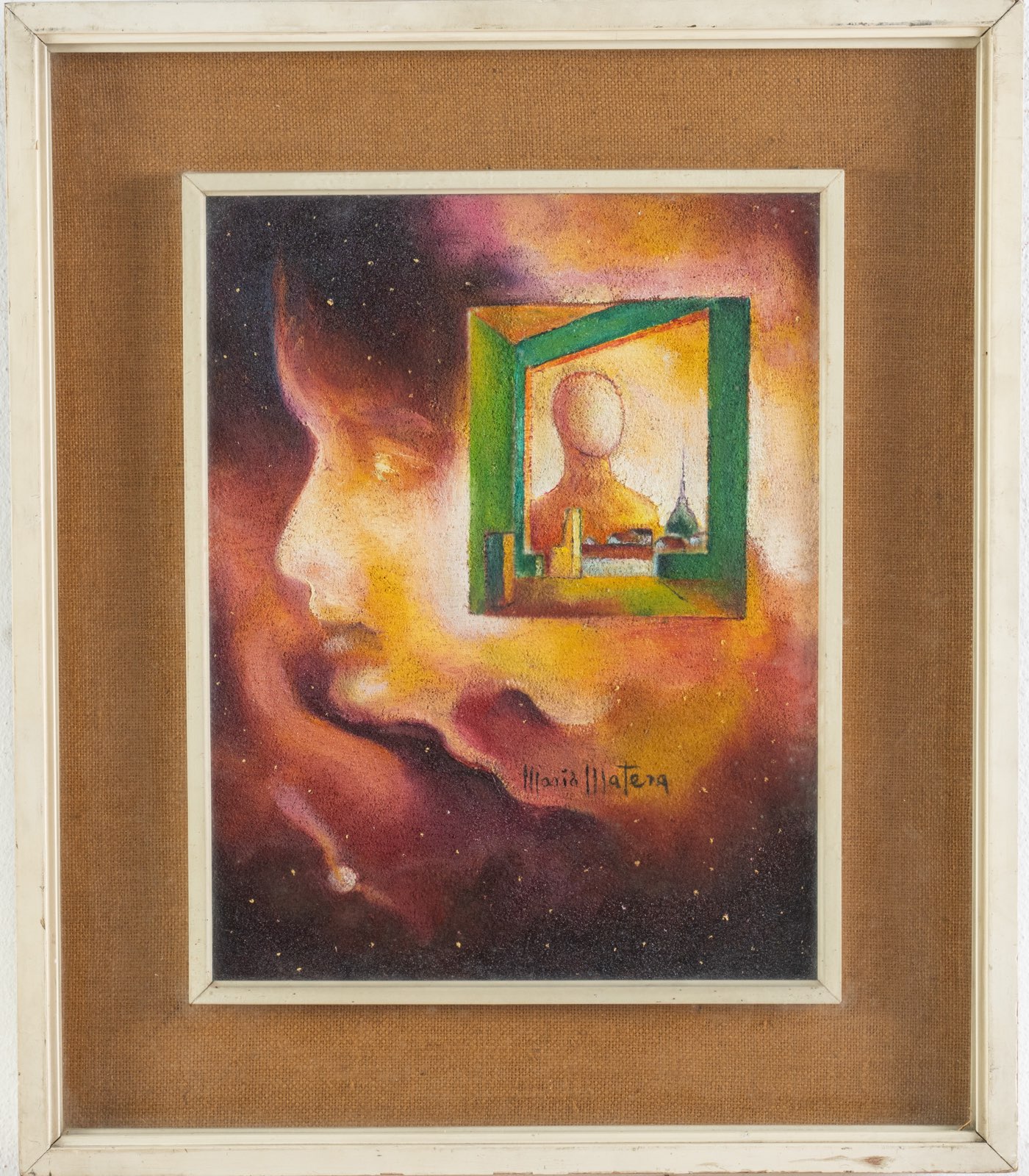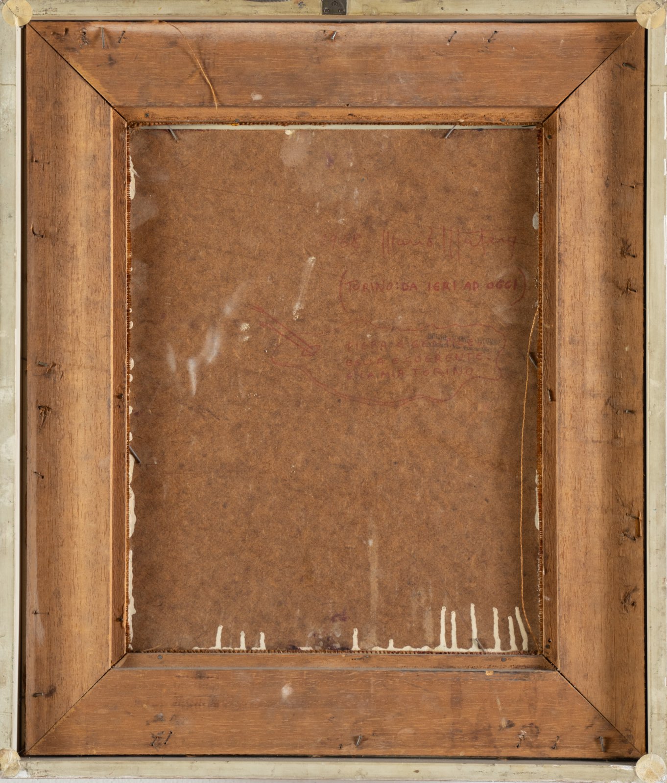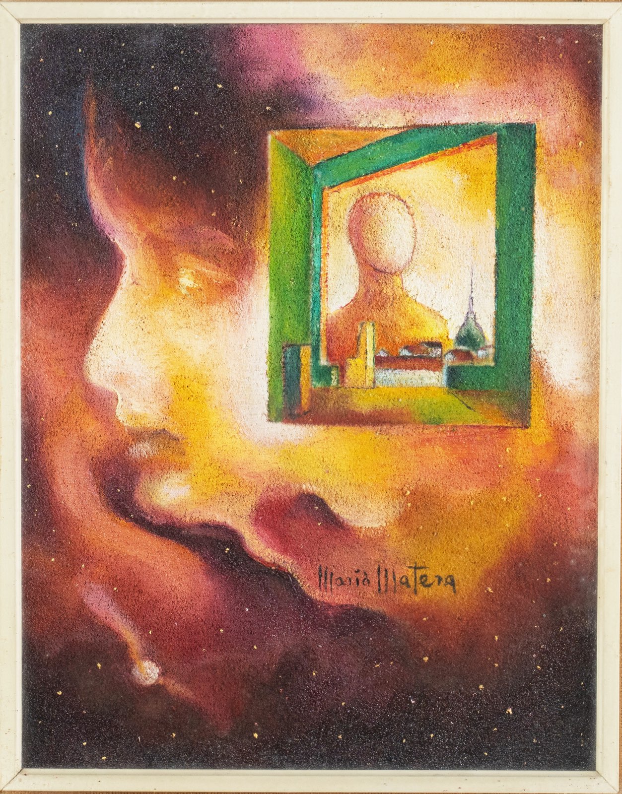 Mario Matera (1968), “Torino: da ieri a oggi/Fiera e gentile, bella e coerente: è la mia Torino”. Olio su cartone pressato, firmato al centro, reca al retro firma dell'artista, data e titolo dell'opera, H cm 35x27