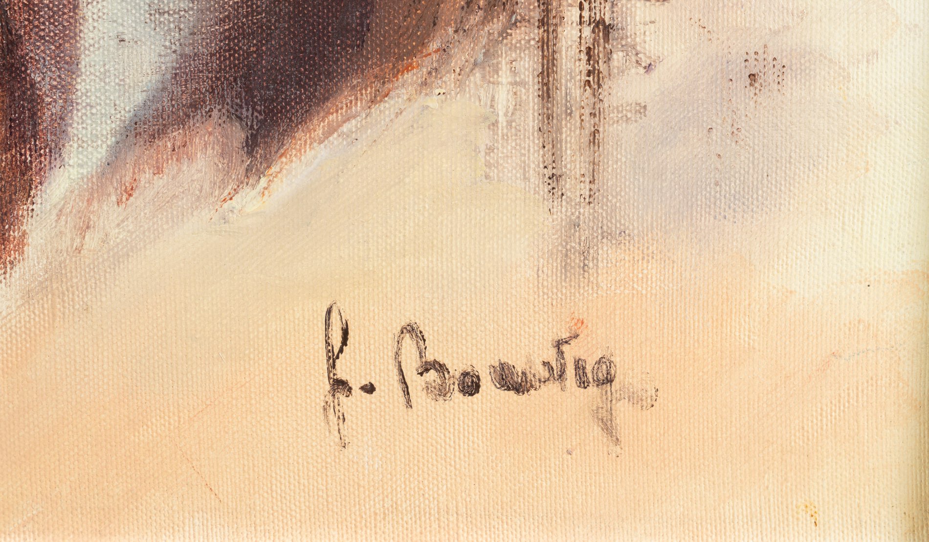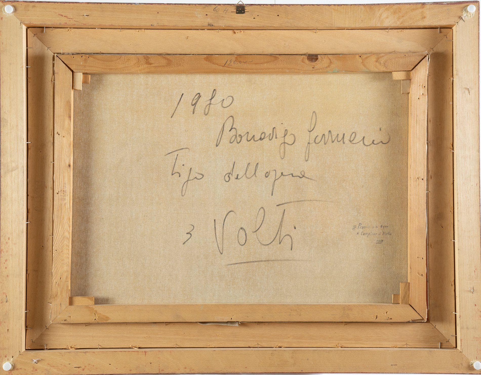 Artista del XX secolo, “3 volti”, 1980. Olio su tela, firmato in basso a destra “F. Bonavigo”, reca al retro iscrizione con data, firma, titolo e iscrizione “II Premio ex Equo/A Campione d'Italia/1980”, H cm 50x70
