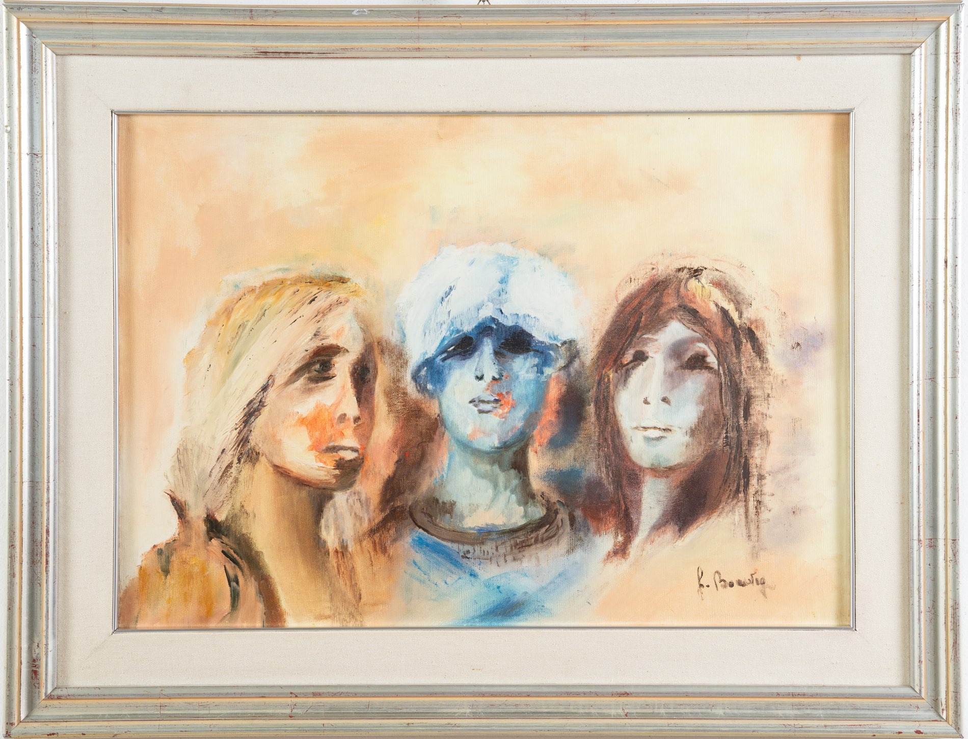 Artista del XX secolo, “3 volti”, 1980. Olio su tela, firmato in basso a destra “F.