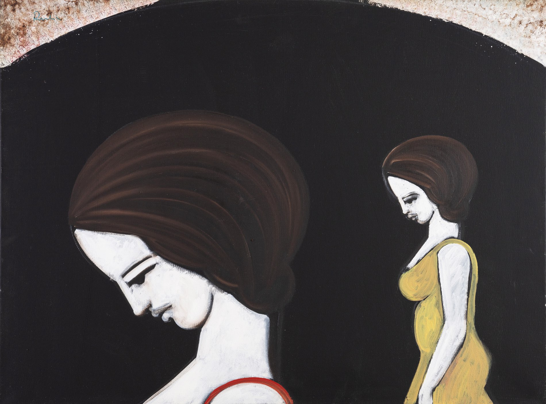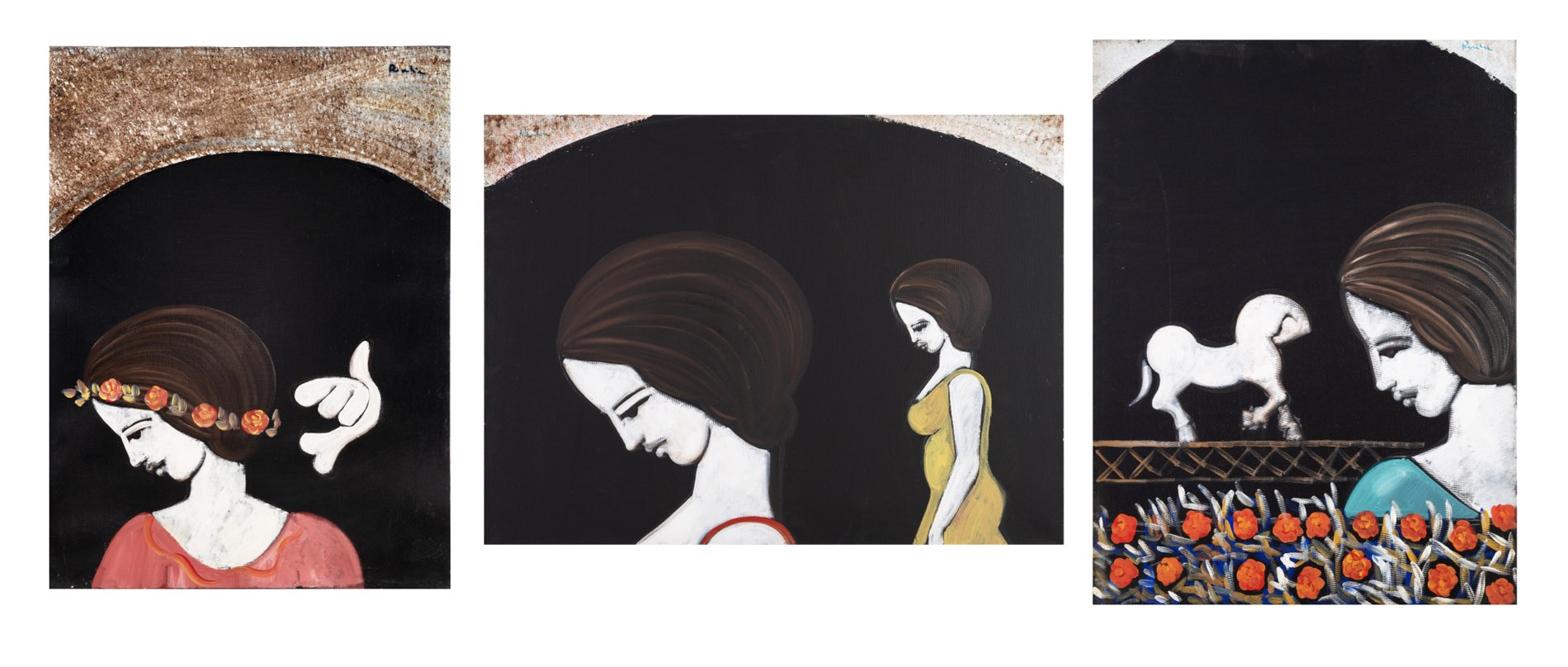 Franco Rivola in arte ROWLIA, “Ritratti femminili”. Lotto composto da tre dipinti olio su