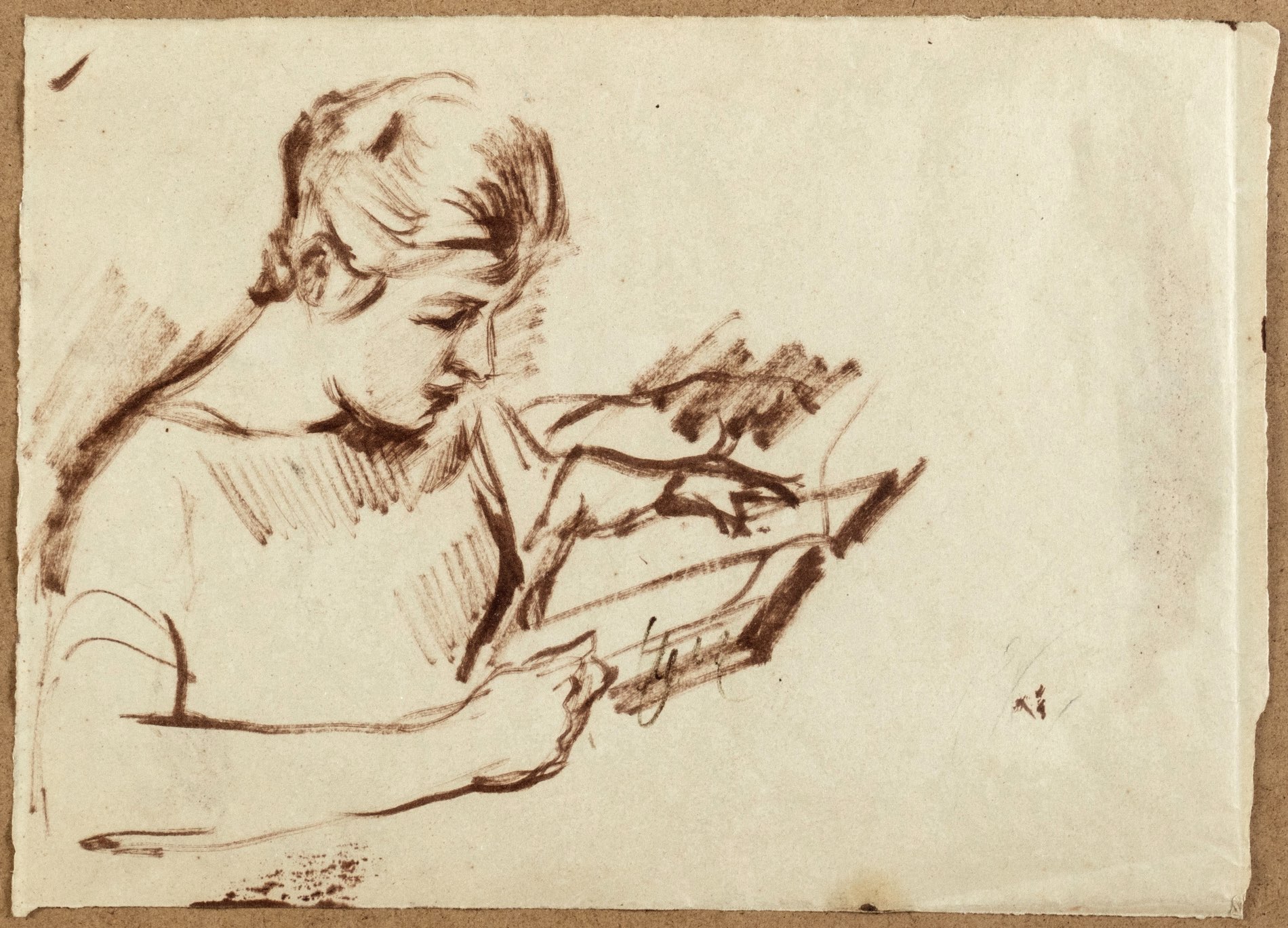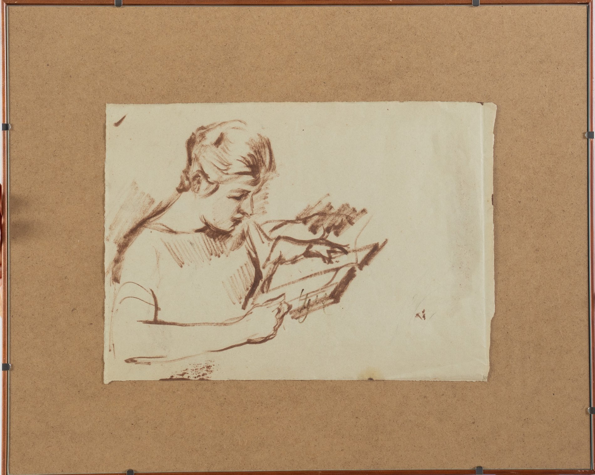 Gino Marzocchi (Molinella 1895 - Bologna 1891), “La lettrice”. Inchiostro su carta, presenta