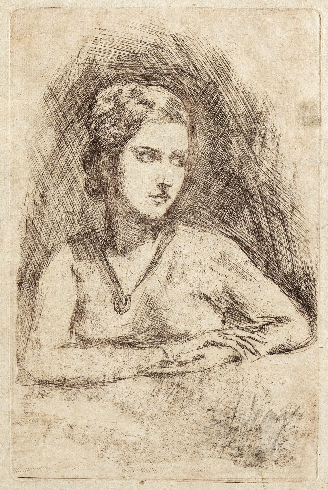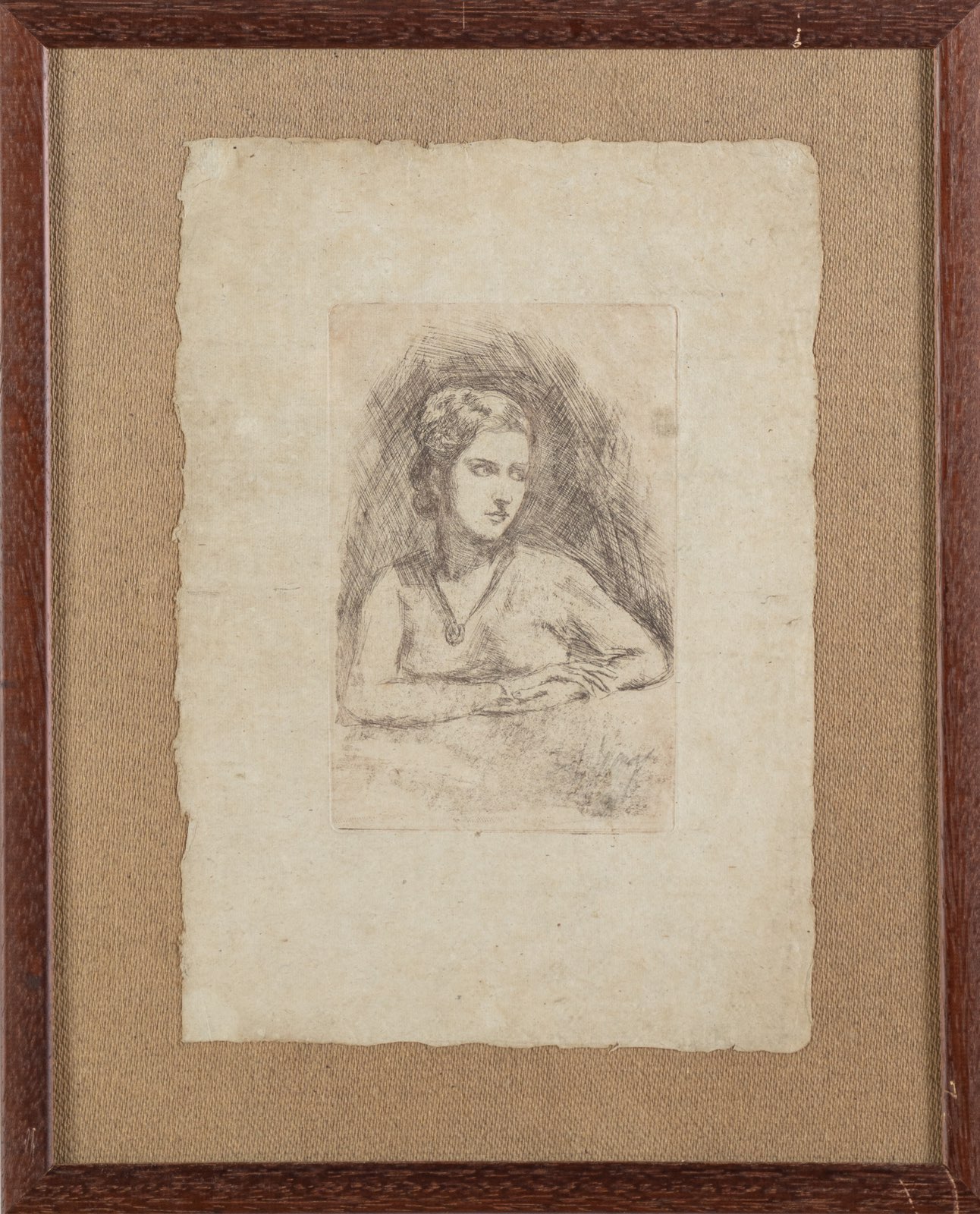 Gino Marzocchi (Molinella 1895 - Bologna 1891), “Figura femminile”. Incisione su carta, firmata