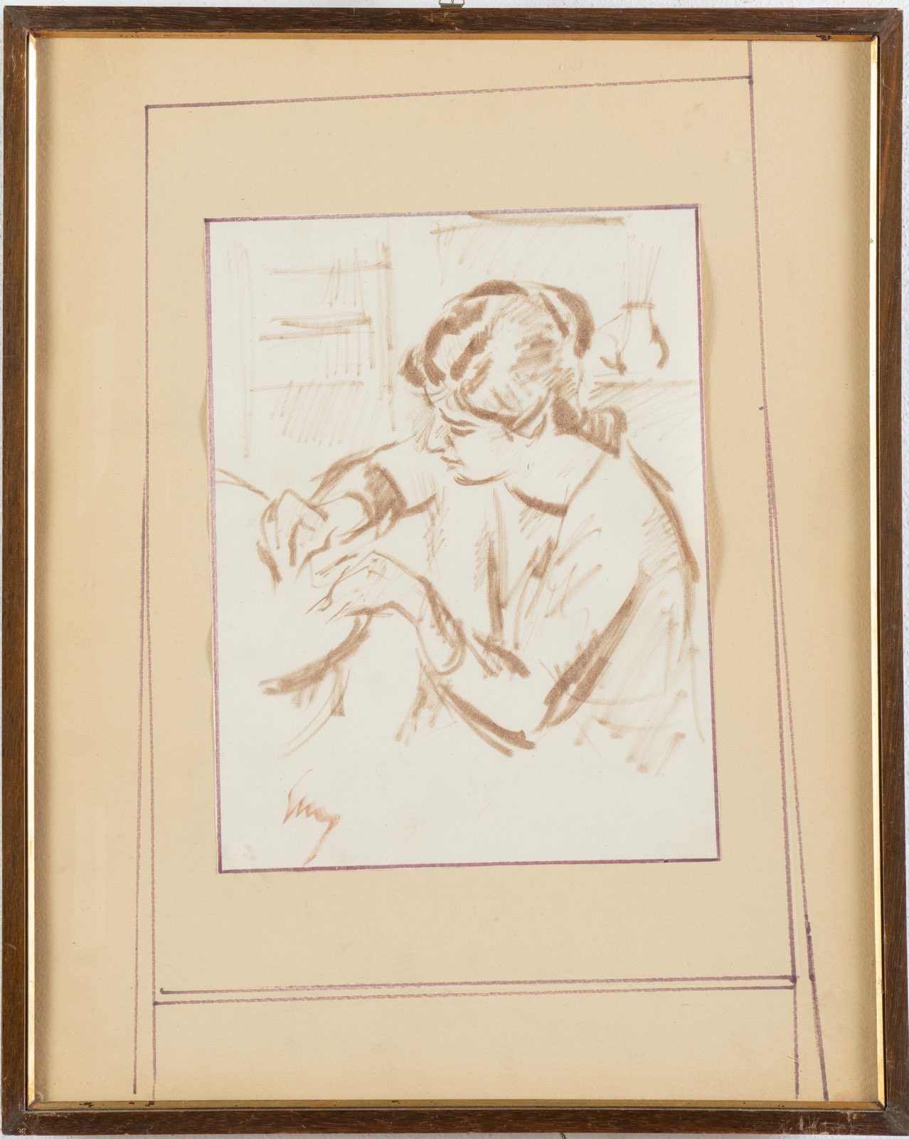 Gino Marzocchi (Molinella 1895 - Bologna 1891), “Figura femminile”. Inchiostro su carta, presenta sigla “GM” in basso a sinistra, H cm 30x23.5