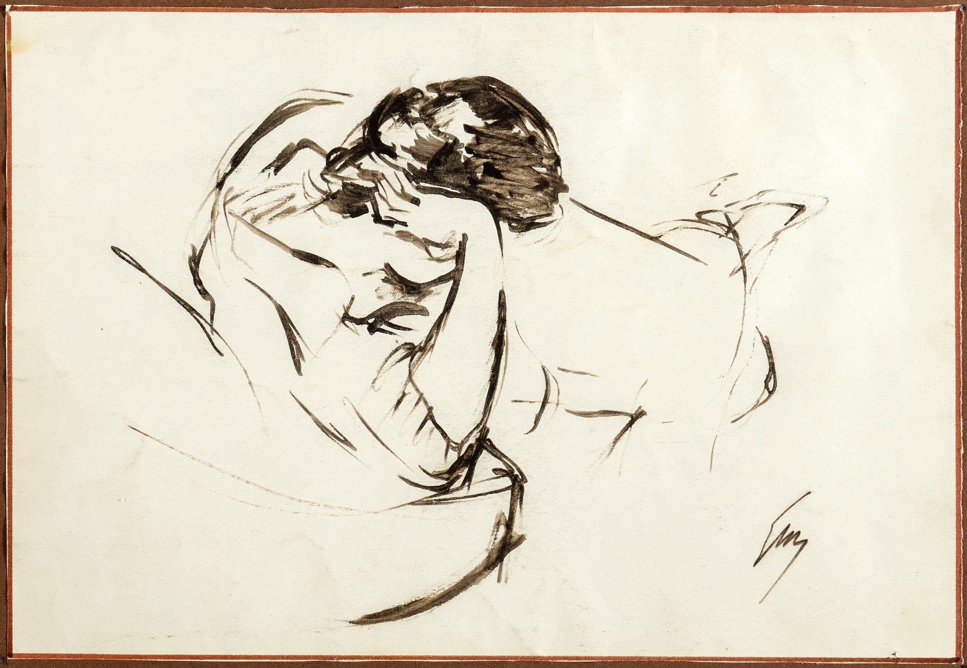 Gino Marzocchi (Molinella 1895 - Bologna 1891), “Senza titolo”. China acquerellata su carta, presenta sigla “GM” in basso a destra, H cm 24x32