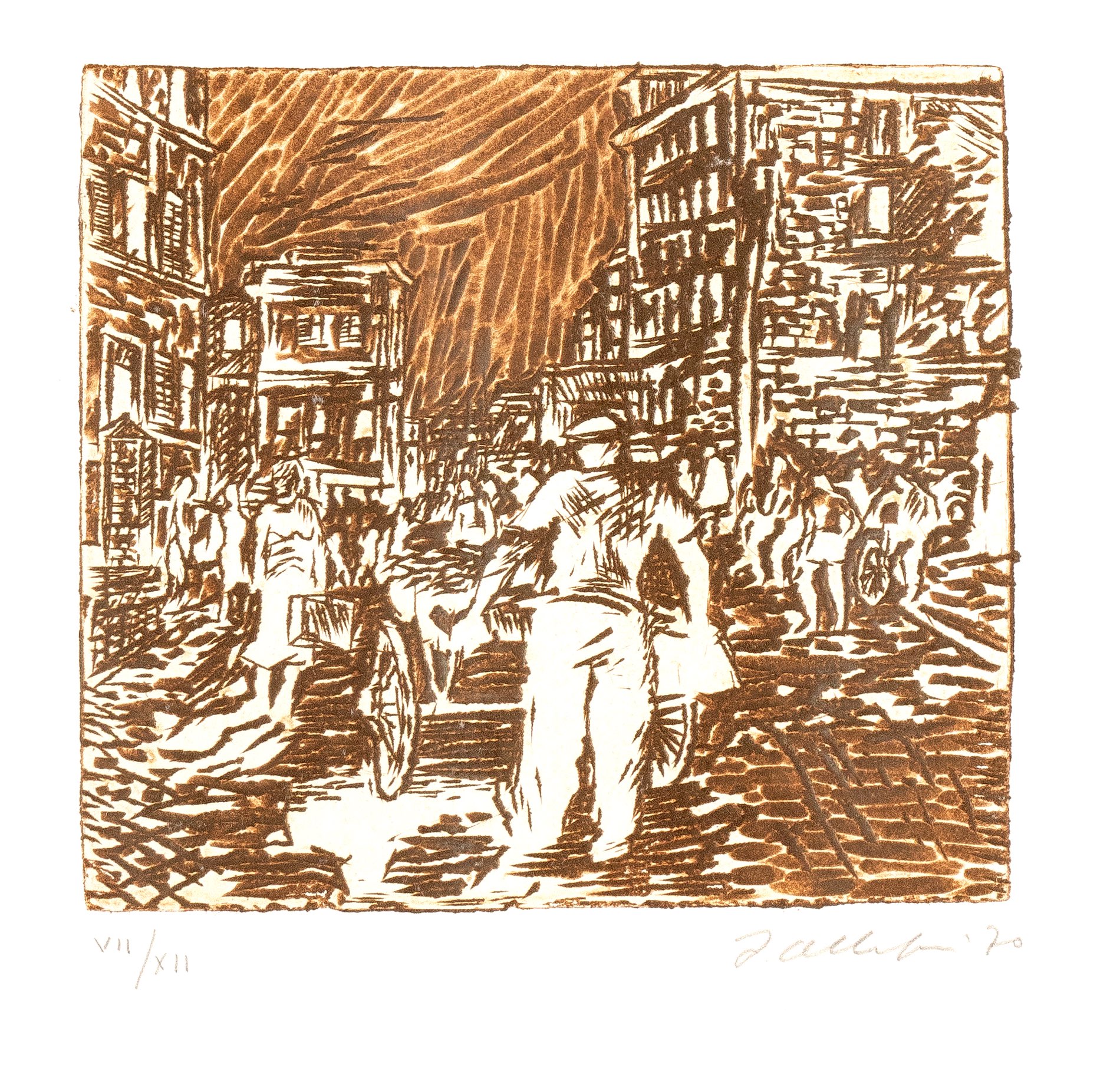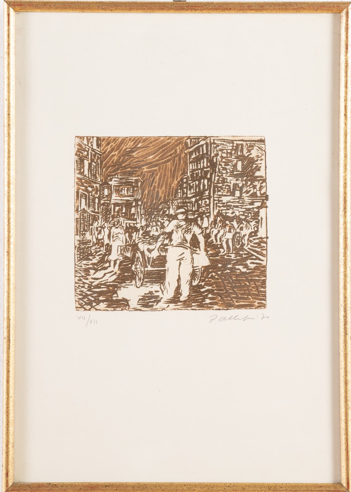 Filippo Albertoni (Reggio Emilia 1930 - Bologna 2011), “Scena di mercato”, 1970. Litografia a