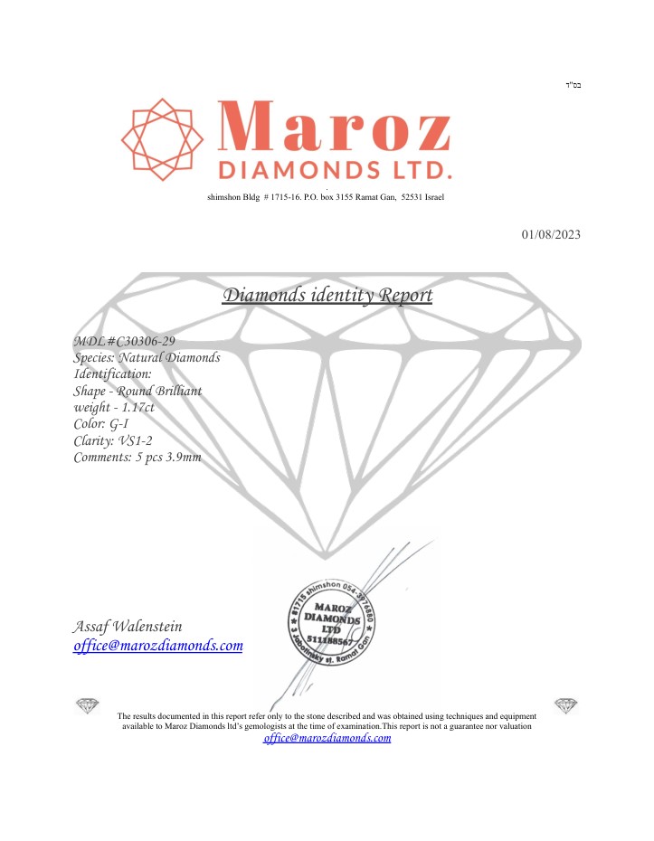 5 DIAMANTI 1,17 CT COLORE G-I - PUREZZA VS - TAGLIO BRILLANTE - CERTIFICATO ID - C30306-29