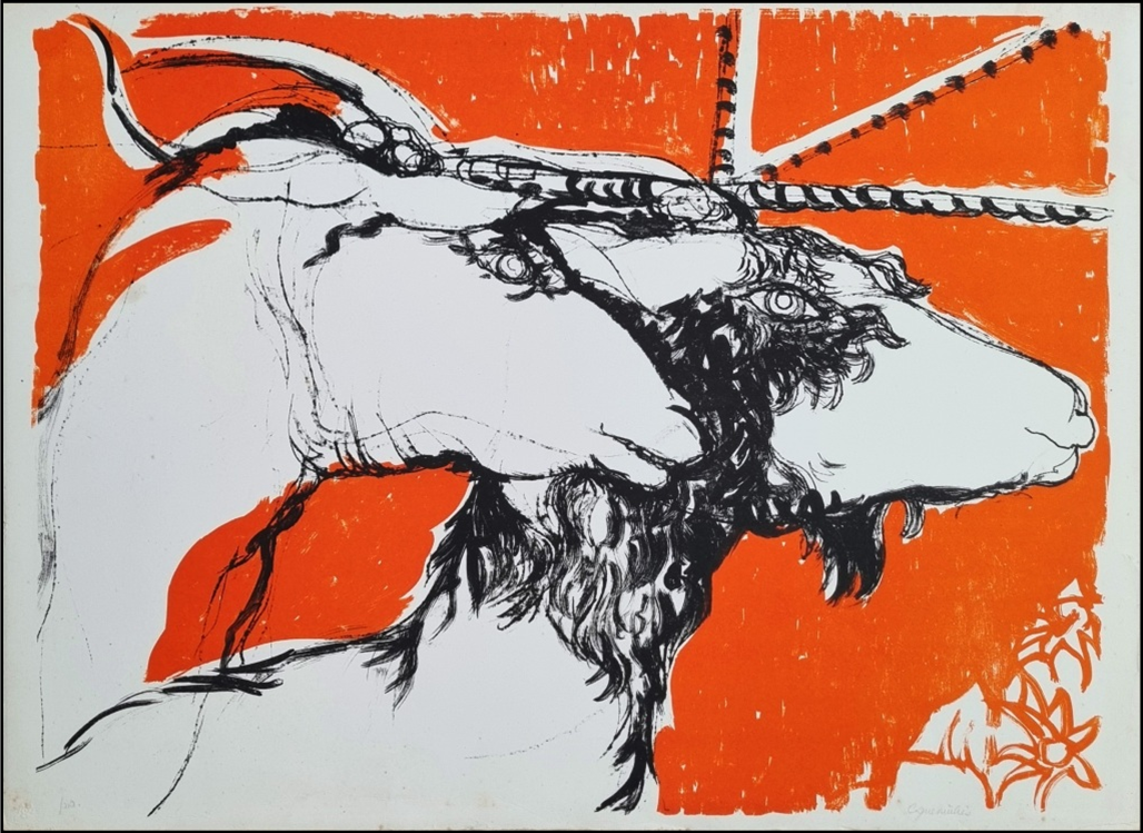 CARROLL ROBERT Ohio 1934 - Massa Carrara 2016 "Senza titolo" Litografia su cartoncino cm 64,5x48,5 del 1966. Firmata e datata sul fronte in basso a destra.