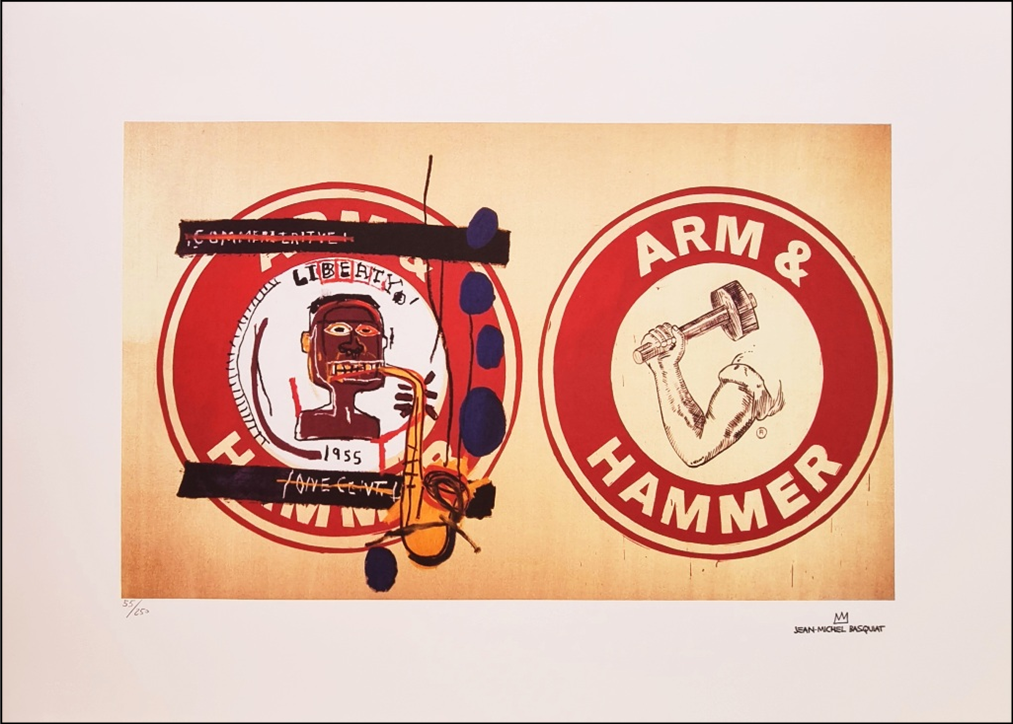 BASQUIAT JEAN-MICHEL New York 1960 - 1988 "Senza titolo" Riproduzione litografica offset cm 70x50. Firma in stampa sul fronte in basso a destra, tiratura 55/250 e timbro a secco a sinistra.