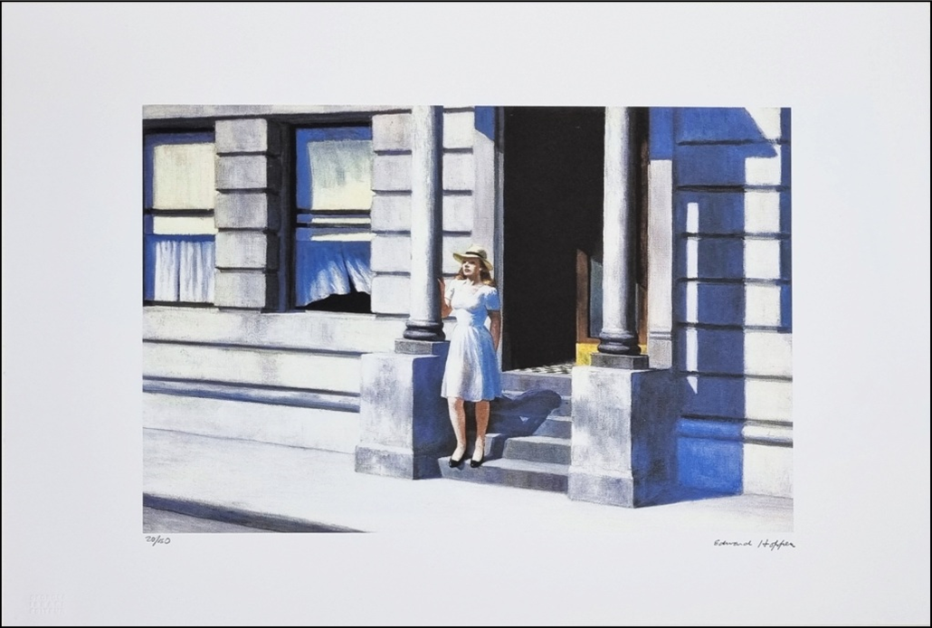 HOPPER EDWARD Stati Uniti 1882 - 1967 "Senza titolo" Litografia offset su carta Arches France Infinity cm 38,3x57,1. Firma in stampa sul fronte in basso a destra, tiratura 20/150 a sinistra. Timbro a secco a cura della Georges Israel Editeur. Certificato di autenticità a cura della Oro Cartier SpA.