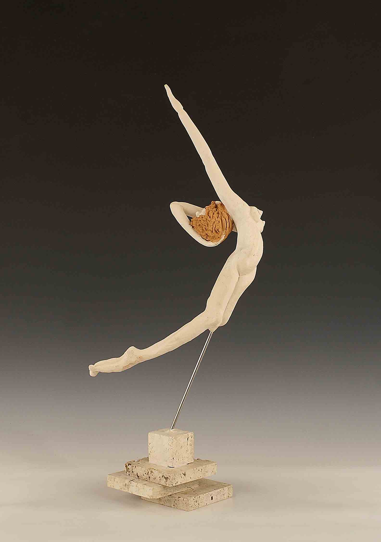 Giovanni Gabriele (Roma 1948), "Eterea", scultura in terracotta dipinta, poggiante su base squadrata in marmo, h. cm. 51, firmata sulla gamba, autentica dell'artista su foto.