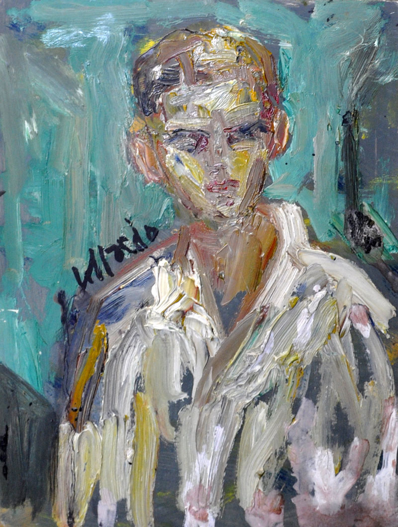SILVIO LOFFREDO Figura Olio su cartone cm. 50x36 Firma al centro Firma sul...