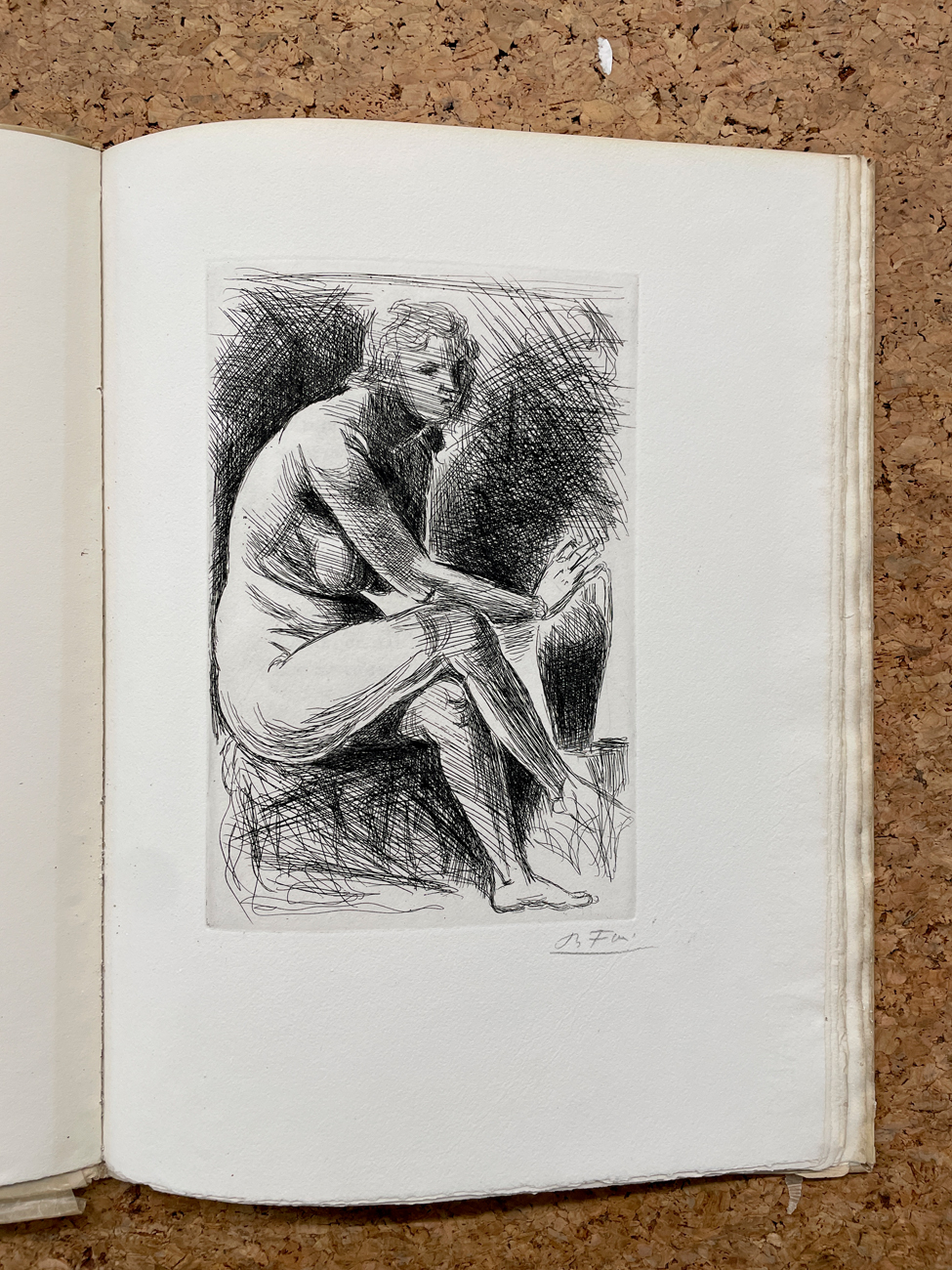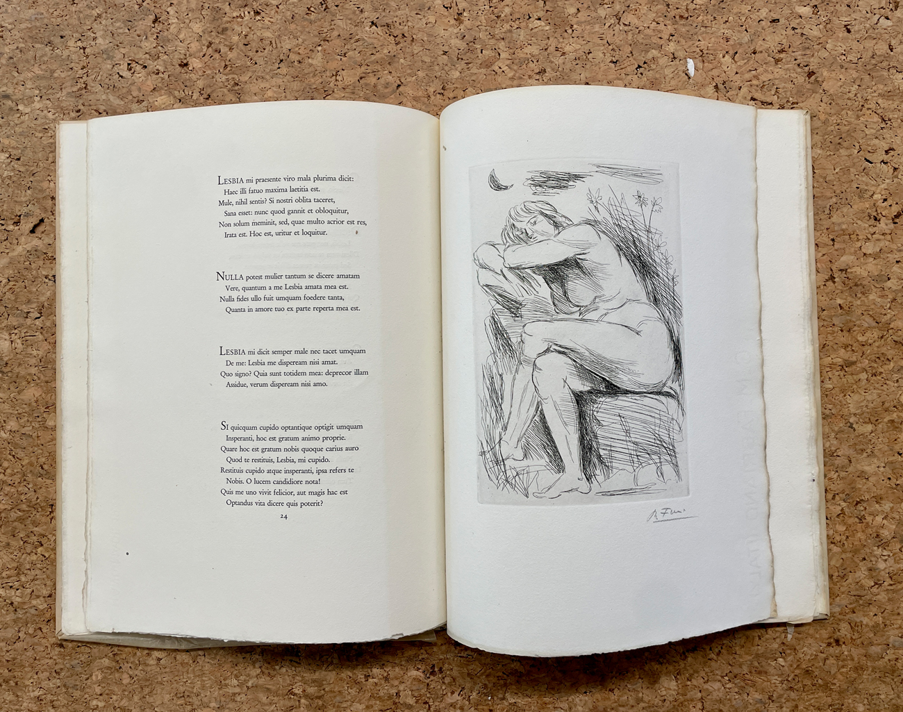 Edizione d'arte recante carmi di Catullo illustrati da due acqueforti di Achille Funi, ciascuna recante firma a matita al fronte