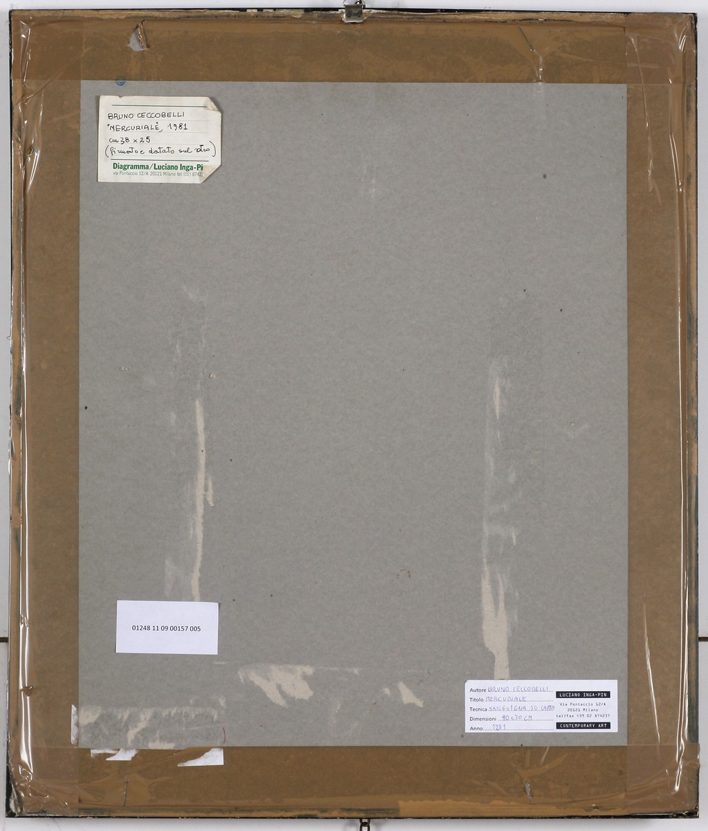 Autentica dell'artista su fotografia con numero di archivio. Al retro reca il cartiglio della galleria Luciano Inga-Pin, Milano. Cornice presente.