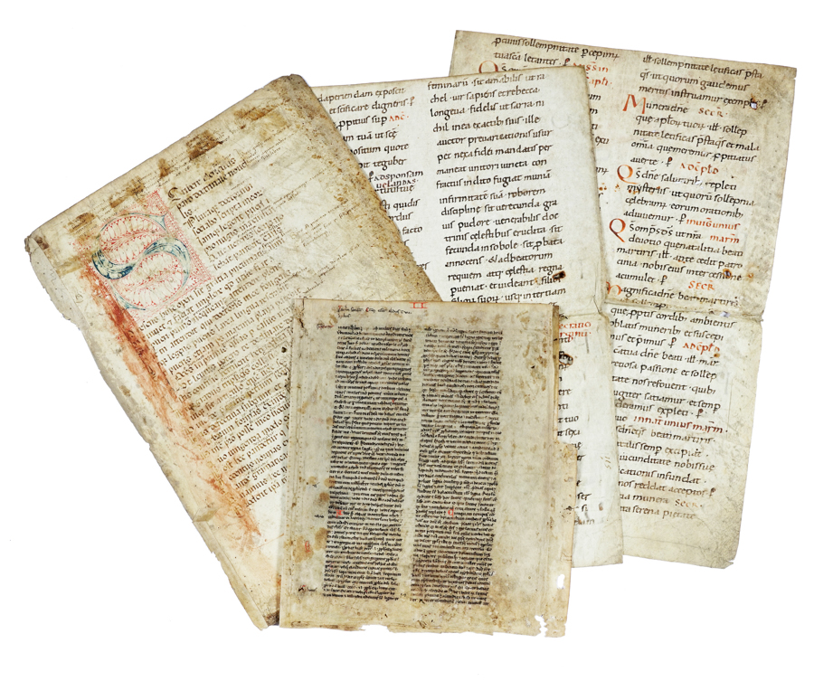 Raccolta di 5 pergamene. Testi profani e sacri. Secoli fine XII circa – XIV secolo.