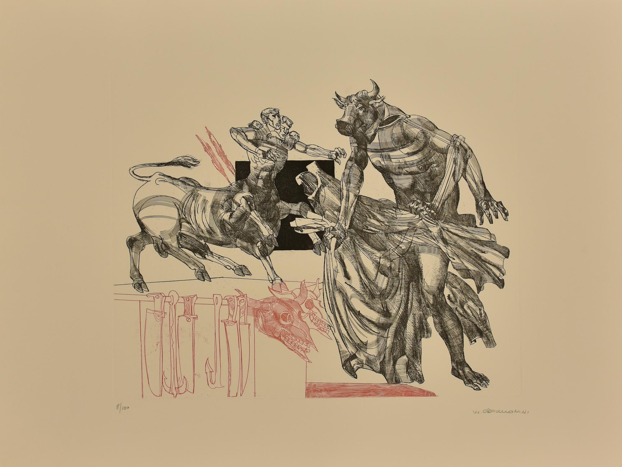 Walter Cremonini DUELLO FRA CENTAURI acquaforte-acquatinta su carta, battuta...