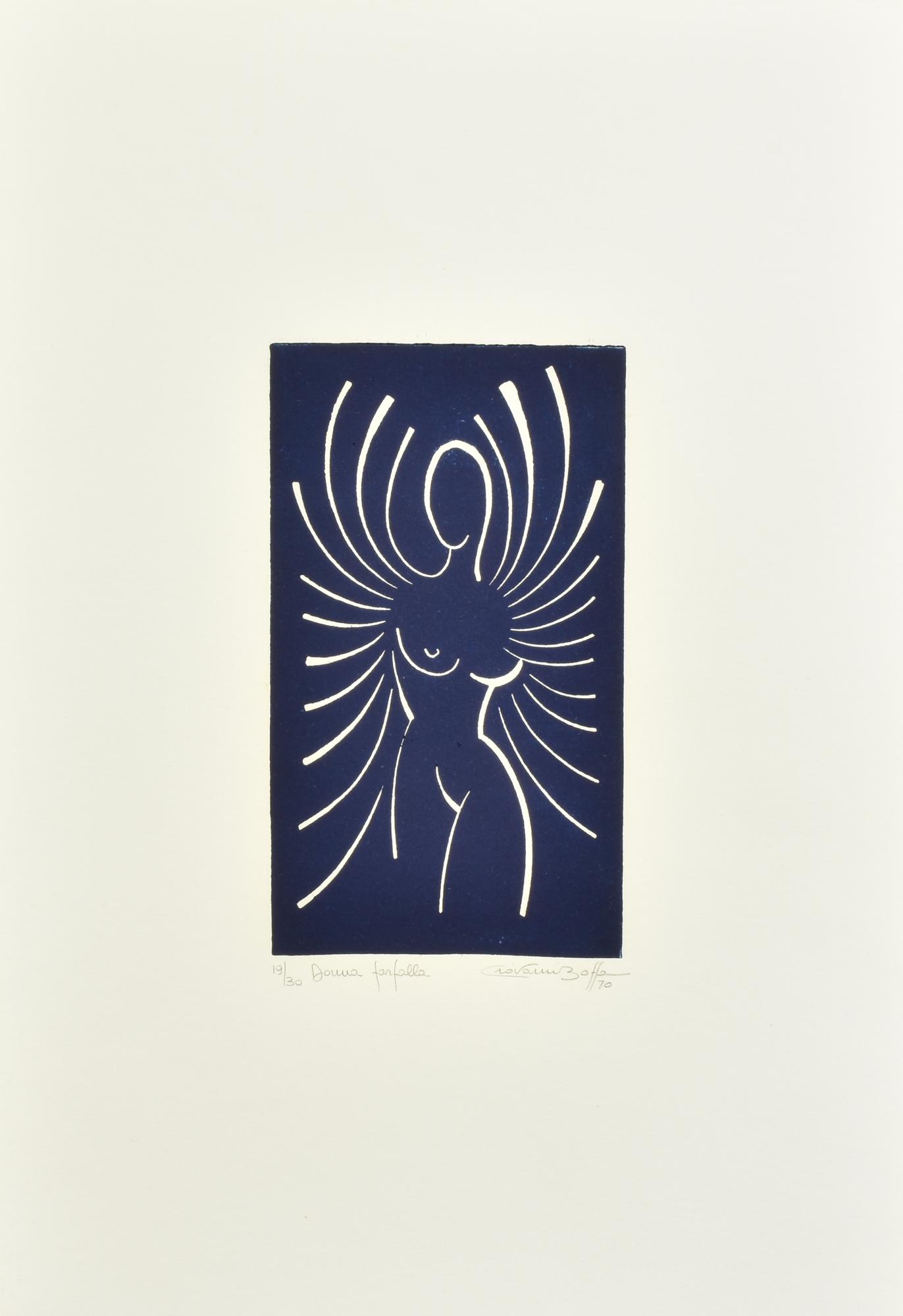 Giovanni Boffa DONNA FARFALLA linoleumgrafia su carta, cm 48,5x33,5; es....