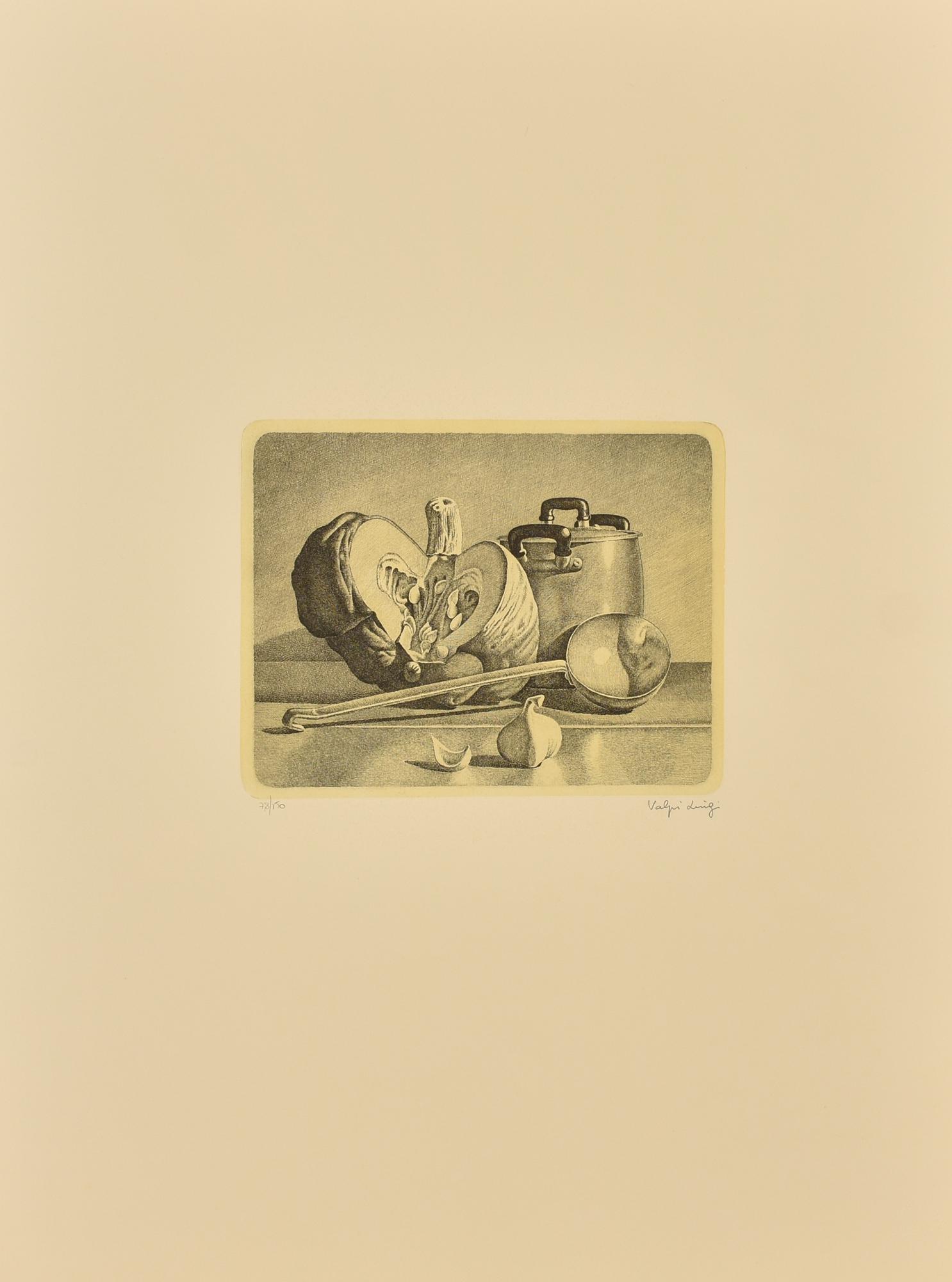 Luigi Volpi NATURA MORTA CON ZUCCA Incisione su carta, battuta cm 19,5x24,5...