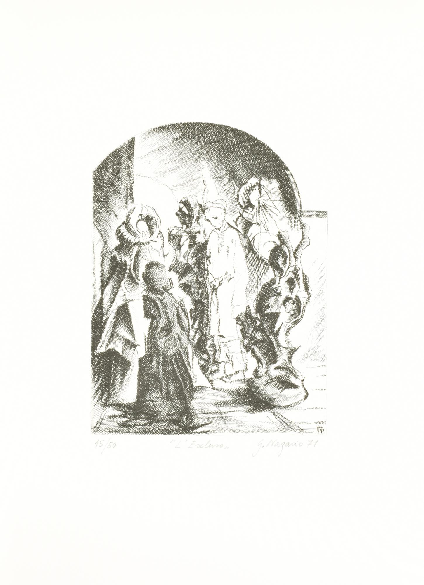 Gaudenzio Nazario L'ESCLUSO incisione su carta, battuta cm 24,5x18,5, su...