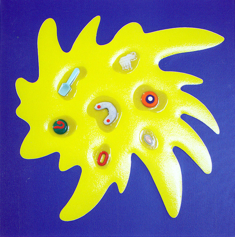 RENZO NUCARA Bang 10 - 37, 2011 Legno, carta, colore serigrafico, resine, oggetti in teca di plexiglass cm. 50x50 Firma, data e titolo sul retro Autentica del Maestro su fotografia