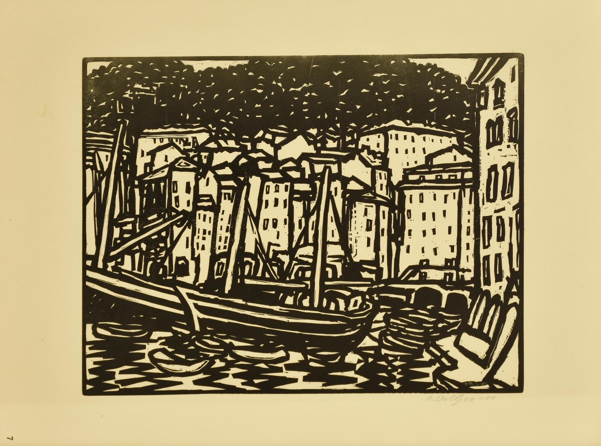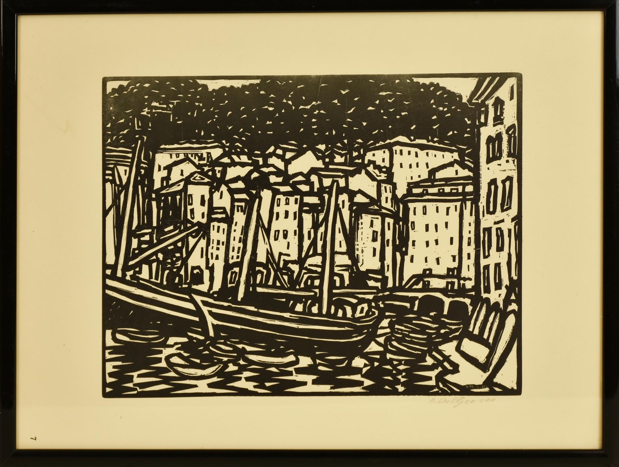 Amleto Del Grosso BARCHE SUL CANALE xilografia, cm 32x44 firma e firma in lastra
